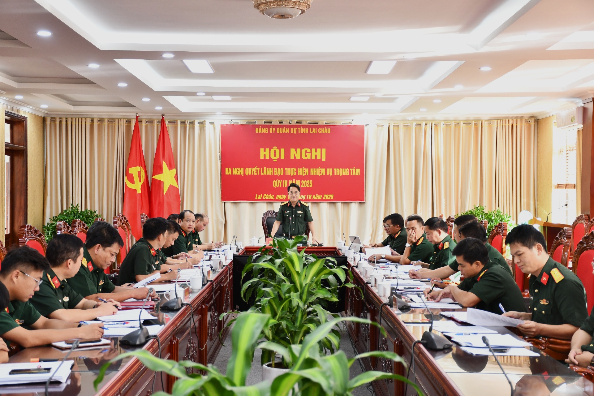 Kết luận hội nghị, Đại tá Triệu Kim Thắng - Phó Bí thư Thường trực Đảng ủy Quân sự tỉnh, Chính ủy Bộ CHQS tỉnh nhấn mạnh một số nhiệm vụ trong thời gian tới của Đảng ủy Quân sự tỉnh: Tiếp tục tăng cường tham mưu, lãnh đạo, chỉ đạo thực hiện các văn bản, nghị quyết của các cấp; tăng cường kiểm tra, giám sát các đơn vị, đặc biệt là các đơn vị mới thành lập. Kịp thời tháo gỡ khó khăn, vướng mắc, đảm bảo hoạt động có hiệu quả. Duy trì nghiêm các kíp trực sẵn sàng chiến đấu (SSCĐ), trực phòng không, luyện tập thuần thục các phương án SSCĐ, chuẩn bị lực lượng, phương tiện sẵn sàng tham gia ứng phó khi có tình huống xảy ra. Lãnh đạo thực hiện tốt công tác chuẩn bị và phục vụ Bộ Quốc phòng kiểm tra công tác quân sự, quốc phòng địa phương năm 2025. Lãnh đạo, chỉ đạo các cơ quan, đơn vị tổ chức tổng kết các nhiệm vụ năm 2025. Xây dựng, triển khai kế hoạch thực hiện nhiệm vụ năm 2026 bảo đảm chặt chẽ, hiệu quả. Triển khai kế hoạch tuyển chọn công dân nhập ngũ năm 2026, nâng cao chất lượng sơ tuyển, khám sức khỏe, bảo đảm đủ chỉ tiêu được giao...