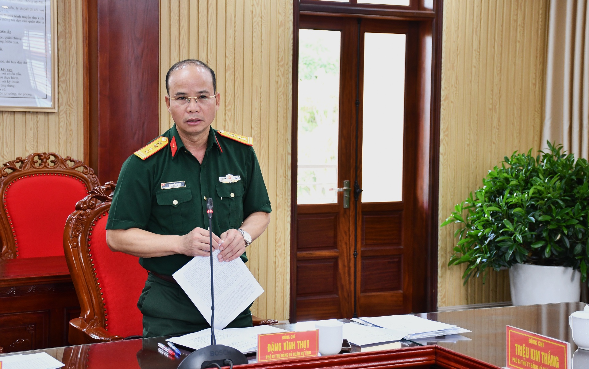 Đại tá Triệu Kim Thắng - Tỉnh ủy viên, Phó Bí thư Thường trực Đảng ủy Quân sự tỉnh, Chính ủy Bộ Chỉ huy quân sự (CHQS) tỉnh chủ trì hội nghị. Dự hội nghị có Đại tá Đặng Vĩnh Thụy - Ủy viên Ban Thường vụ Tỉnh ủy, Phó Bí thư Đảng ủy Quân sự tỉnh, Chỉ huy trưởng Bộ CHQS tỉnh; các đồng chí trong Ban Thường vụ Đảng ủy Quân sự tỉnh.