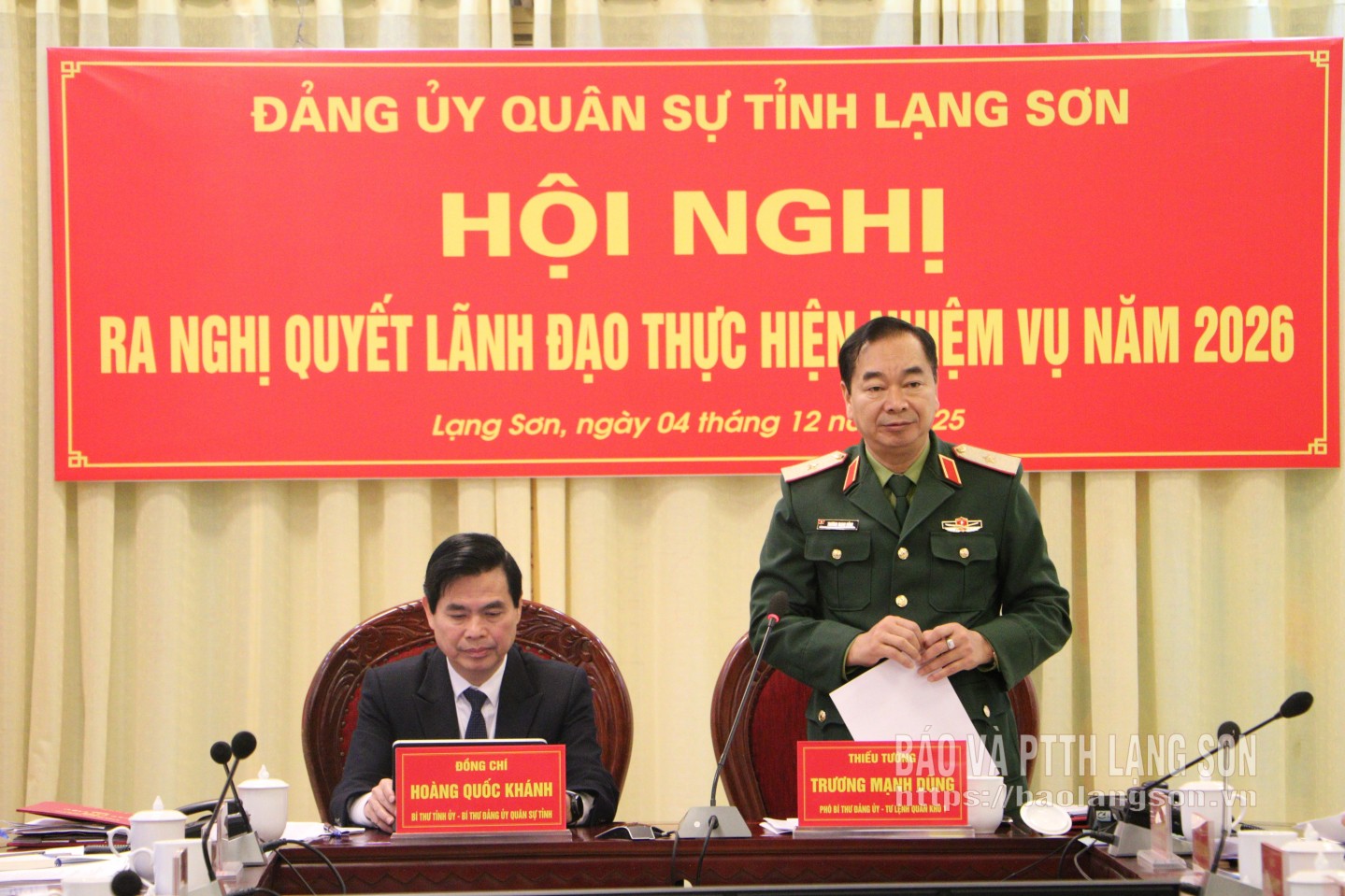 Phát biểu tại hội nghị, Thiếu tướng Trương Mạnh Dũng, Phó Bí thư Đảng ủy, Tư lệnh Quân khu I ghi nhận, biểu dương những kết quả của Đảng bộ Quân sự tỉnh Lạng Sơn đạt được thời gian qua. Đồng chí đề nghị: Thời gian tới, Đảng ủy Quân sự tỉnh tiếp tục quán triệt các nghị quyết, kết luận của cấp trên về nhiệm vụ quân sự, quốc phòng; tiếp tục xây dựng, củng cố thế trận quốc phòng toàn dân gắn với thế trận an ninh nhân dân và xây dựng khu vực phòng thủ tỉnh ngày càng vững chắc.