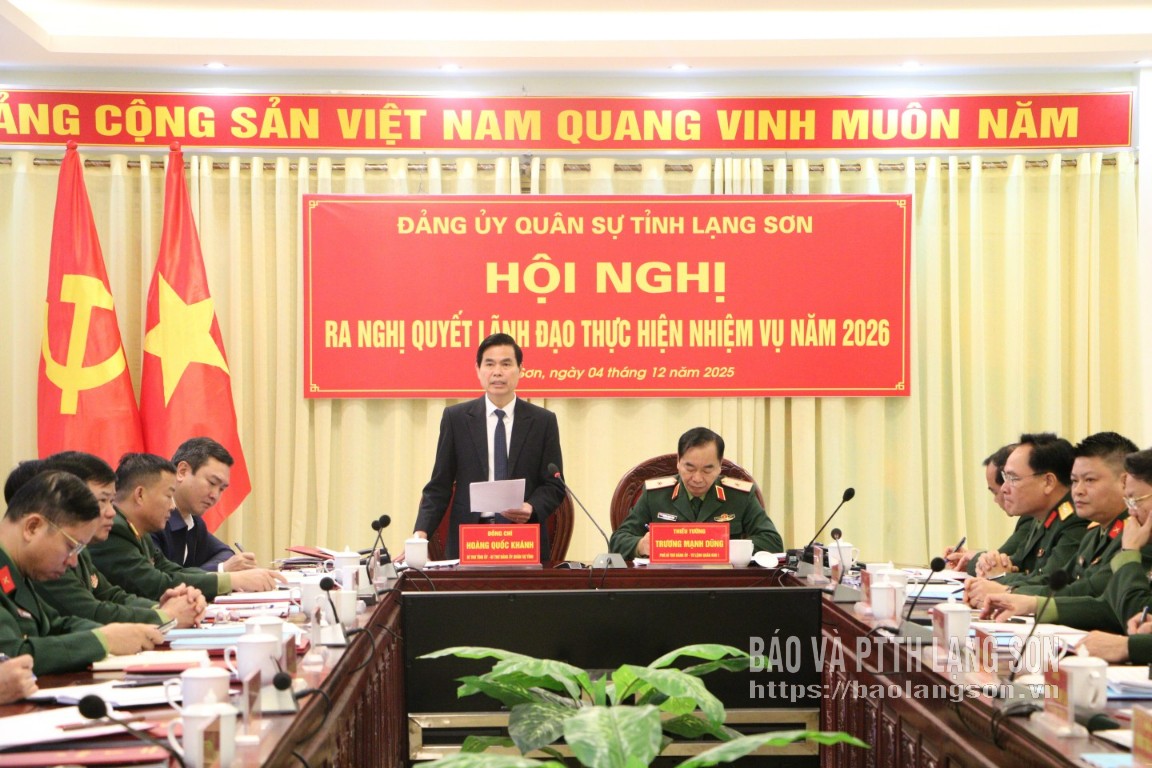 Phát biểu bế mạc hội nghị, đồng chí Hoàng Quốc Khánh, Bí thư Tỉnh ủy, Bí thư Đảng ủy Quân sự tỉnh Lạng Sơn khẳng định: Nghị quyết của hội nghị lần này đã xác định rõ mục tiêu, chỉ tiêu, nhiệm vụ và các giải pháp chủ yếu. Để thực hiện thắng lợi nhiệm vụ quốc phòng, quân sự địa phương, công tác biên phòng trong năm 2026, thời gian tới, Đảng ủy Quân sự tỉnh tiếp tục lãnh đạo, chỉ đạo duy trì nghiêm chế độ sẵn sàng chiến đấu, quản lý, bảo vệ vững chắc chủ quyền an ninh biên giới và ngăn chặn hiệu quả các hoạt động xuất nhập cảnh trái phép, buôn lậu.