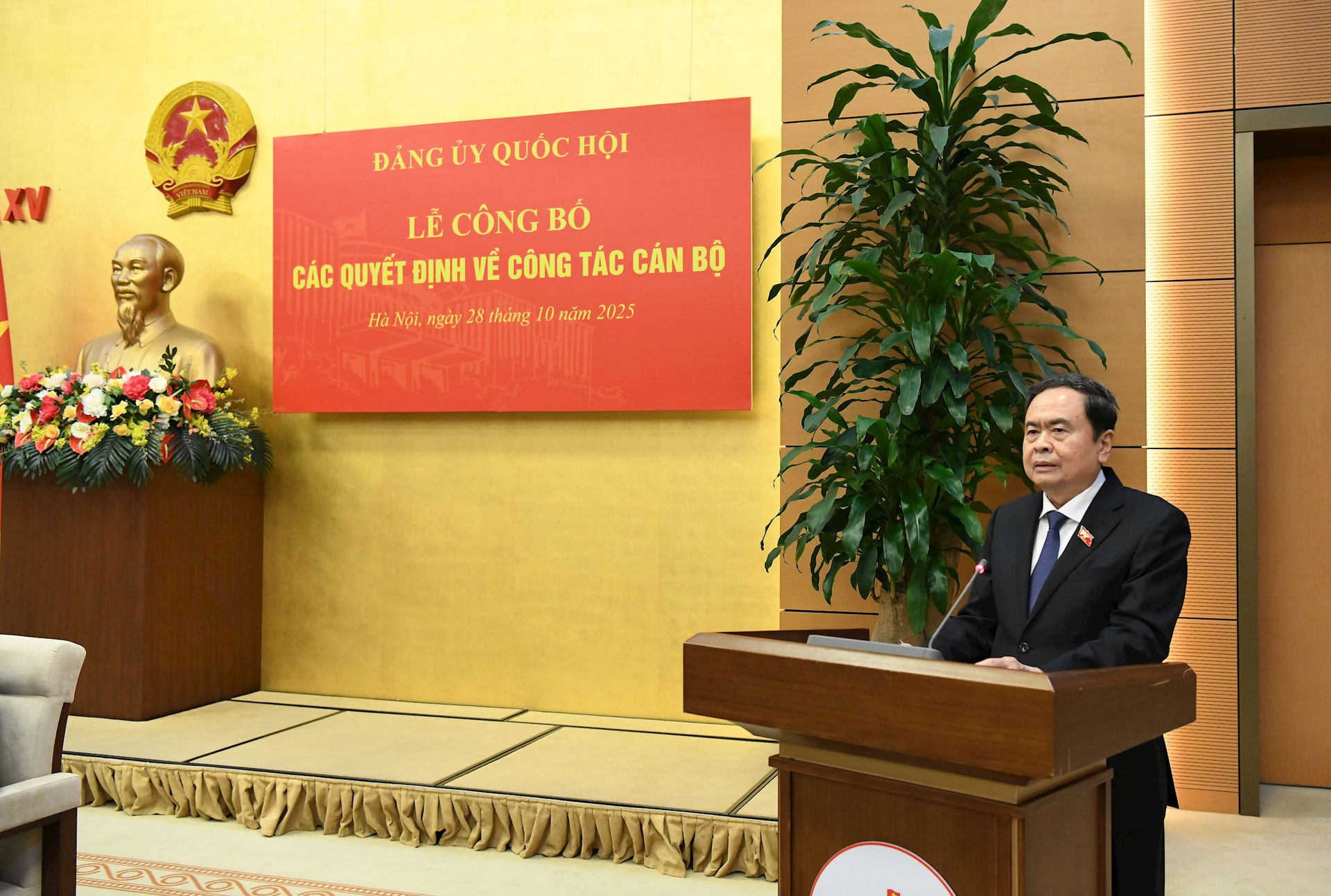 Phát biểu tại Lễ công bố, Bí thư Đảng ủy Quốc hội, Chủ tịch Quốc hội Trần Thanh Mẫn chúc mừng các đồng chí được chỉ định tham gia Ban Chấp hành, Ban Thường vụ Đảng ủy Quốc hội và giữ chức Bí thư các đảng ủy trực thuộc; đồng thời khẳng định, đây là vinh dự và cũng là trách nhiệm lớn lao của các đồng chí trong giai đoạn chuẩn bị cho Đại hội Đảng toàn quốc lần thứ XIV, chuẩn bị bầu cử đại biểu Quốc hội khóa XVI và Hội đồng nhân dân các cấp nhiệm kỳ 2026-2031, đặc biệt là tổ chức Kỳ họp thứ Mười - Kỳ họp cuối cùng của Quốc hội khóa XV.