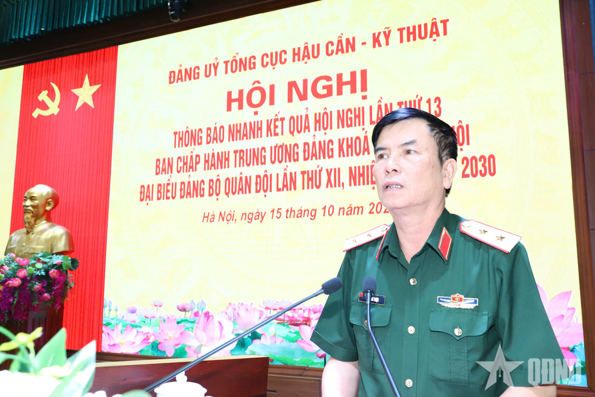 Ngay sau hội nghị, Thường vụ Đảng ủy Tổng cục Hậu cần - Kỹ thuật yêu cầu cấp ủy, chỉ huy các cấp lãnh đạo, chỉ đạo tổ chức tuyên truyền, quán triệt đến toàn thể cán bộ, đảng viên, quần chúng về kết quả Hội nghị lần thứ 13 Ban Chấp hành Trung ương Đảng khóa XIII và Đại hội đại biểu Đảng bộ Quân đội lần thứ XII, nhiệm kỳ 2025-2030, trọng tâm: Quán triệt phát biểu của đồng chí Tô Lâm, Tổng Bí thư Ban Chấp hành Trung ương Đảng Cộng sản Việt Nam (đăng trên Báo Quân đội nhân dân ngày 1 và 3-10); Thư của Đại hội đại biểu Đảng bộ Quân đội lần thứ XII (đăng trên Báo Quân đội nhân dân ngày 3-10); Thông báo nhanh kết quả Hội nghị lần thứ 13 Ban Chấp hành Trung ương Đảng khóa XIII; Thông báo nhanh kết quả Đại hội đại biểu Đảng bộ Quân đội lần thứ XII, nhiệm kỳ 2025-2030. Yêu cầu cấp trên trực tiếp cơ sở hoàn thành trước ngày 21-10; cấp cơ sở hoàn thành trước ngày 25-10.