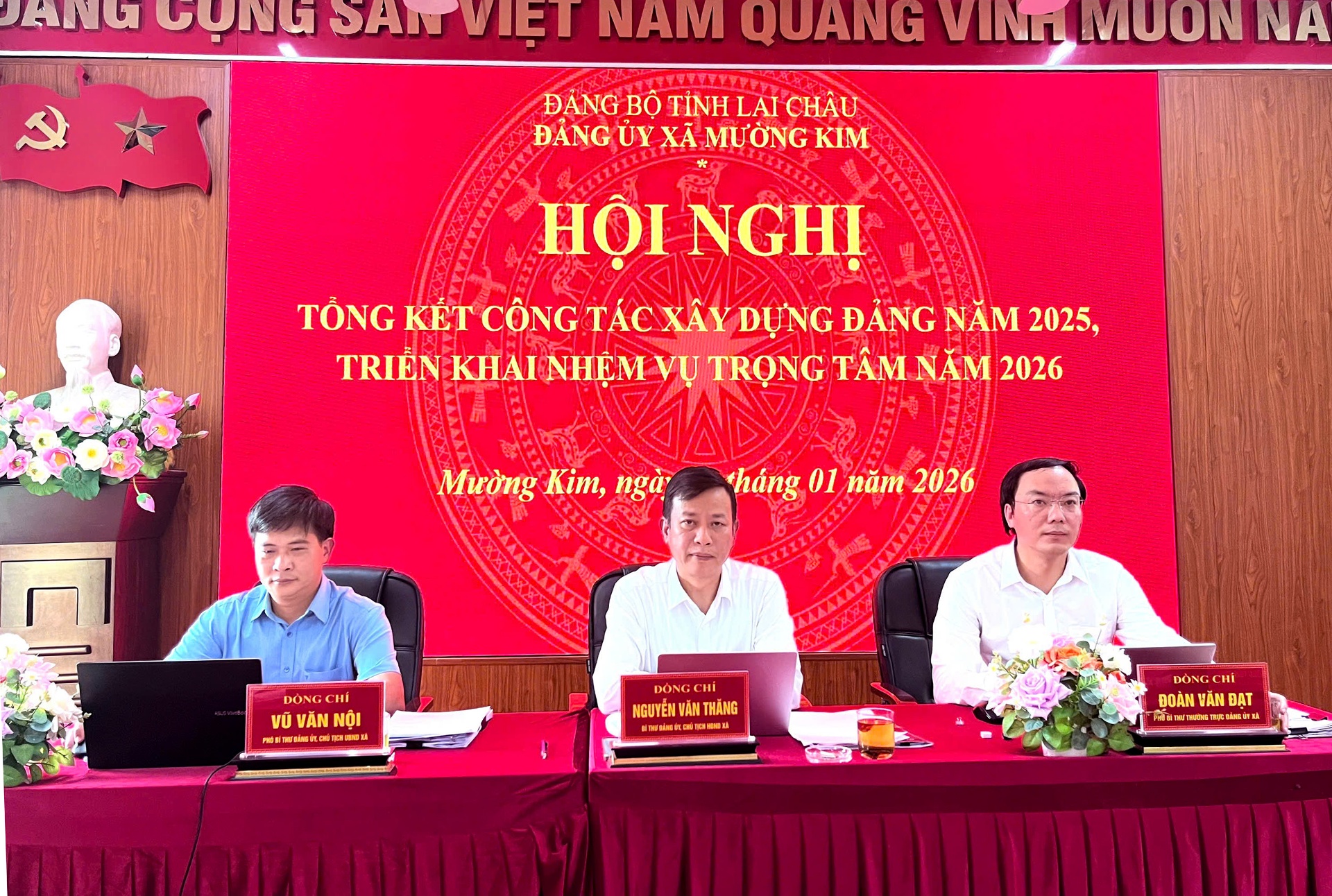 Các đồng chí: Nguyễn Văn Thăng - Bí thư Đảng ủy, Chủ tịch HĐND xã; Đoàn Văn Đạt - Phó Bí thư Thường trực Đảng ủy; Vũ Văn Nội - Phó Bí thư Đảng ủy, Chủ tịch UBND xã đồng chủ trì hội nghị. Dự hội nghị có các đồng chí trong Ban Chấp hành Đảng bộ xã; các đồng chí bí thư, phó bí thư các chi bộ trực thuộc và đại diện các ban, ngành, đoàn thể.