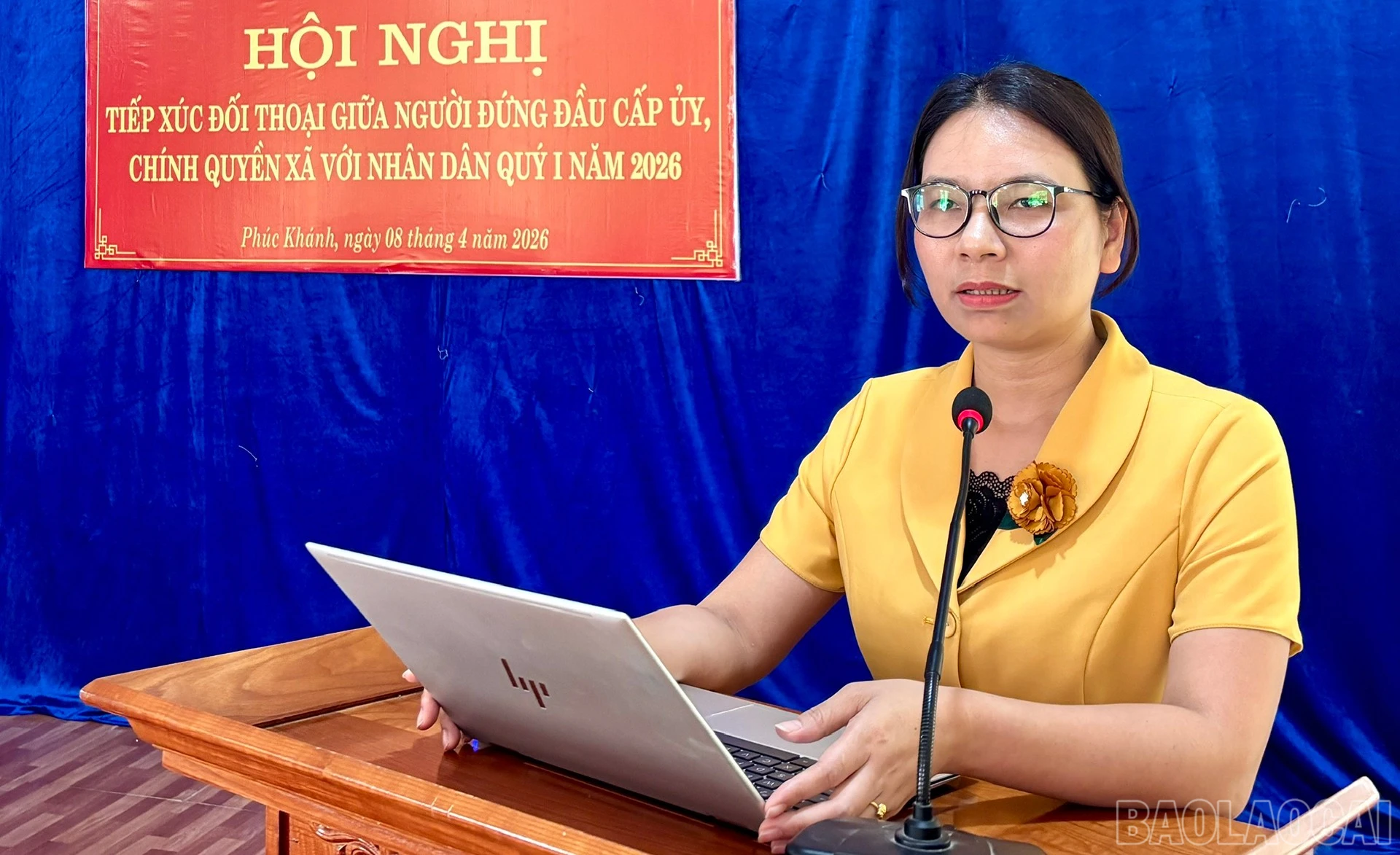 Chủ tịch UBND xã Phúc Khánh Trịnh Thị Duyên phát biểu ý kiến tiếp thu, giải trình các ý kiến của người dân tại hội nghị.