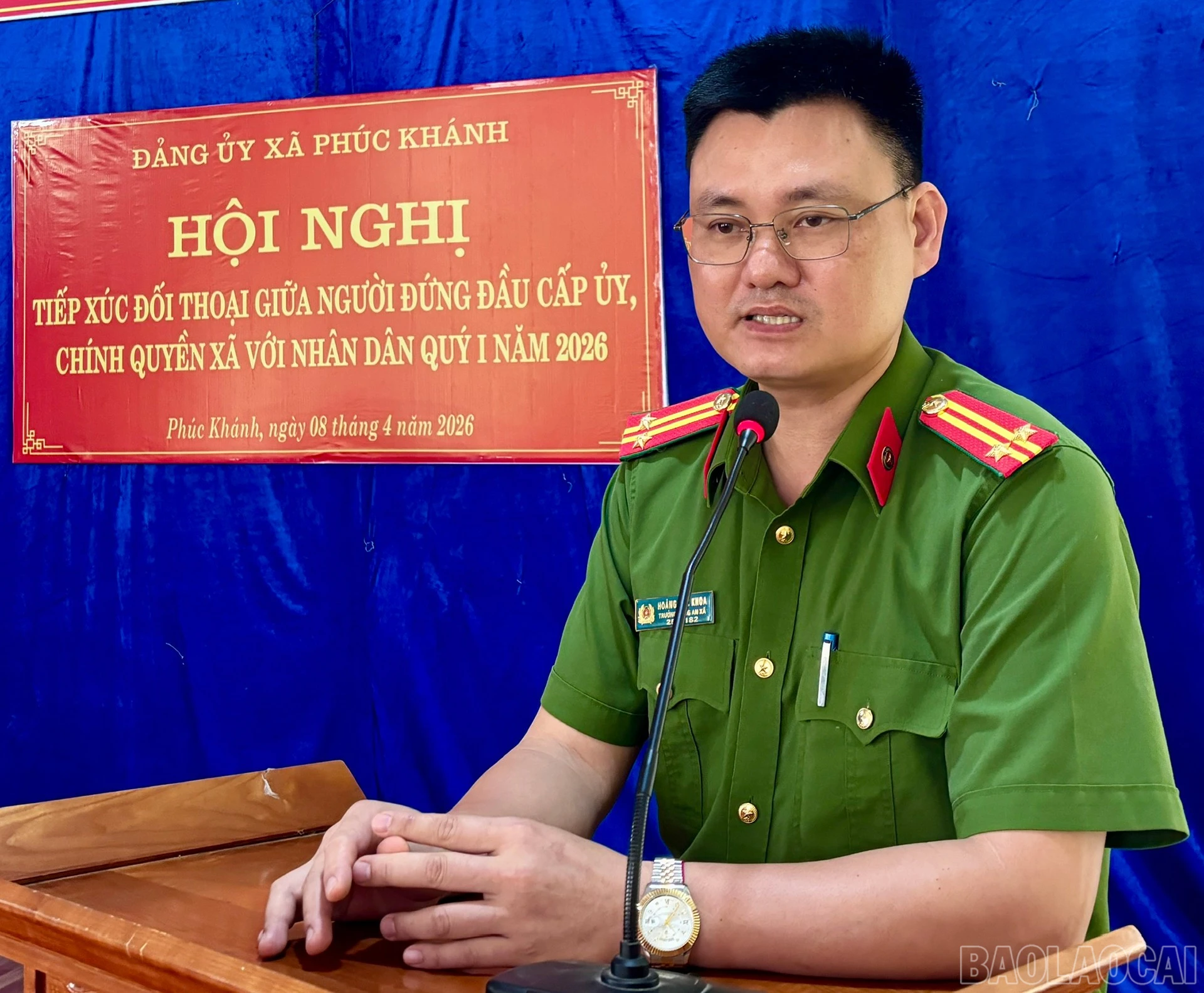 Tại hội nghị, Công an xã Phúc Khánh tuyên truyền về xây dựng xã không có ma túy.