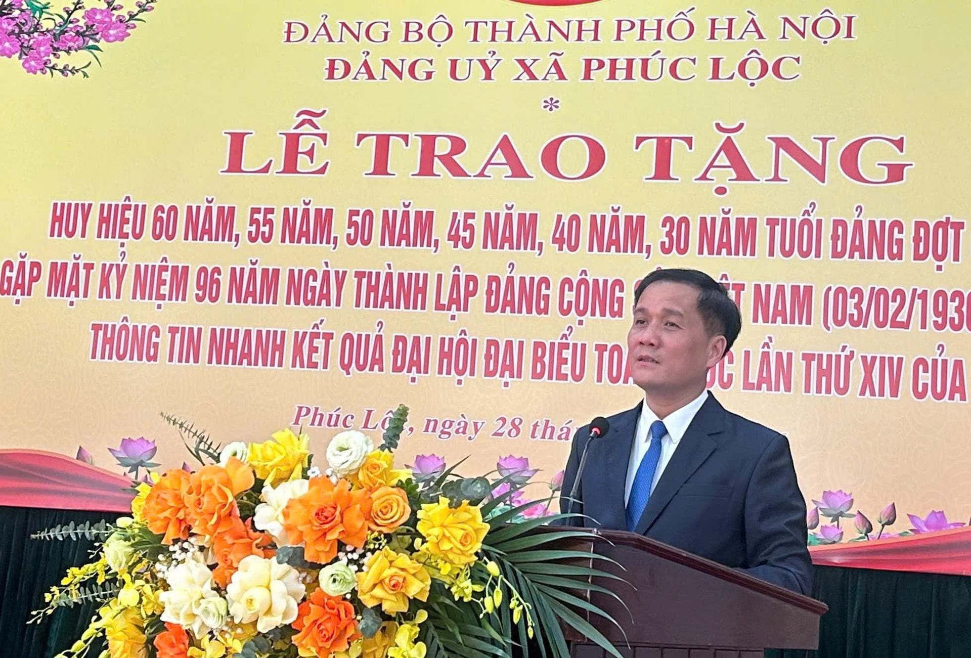 Phát biểu tại buổi lễ, Bí thư Đảng ủy xã Phúc Lộc Tô Văn Sáng chúc mừng các đảng viên được trao Huy hiệu Đảng đợt 3-2, khẳng định đây là phần thưởng cao quý của Đảng ghi nhận sự cống hiến bền bỉ, kiên trung của các đảng viên qua nhiều giai đoạn cách mạng.