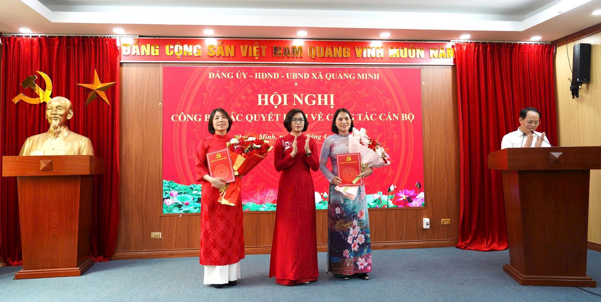 Theo đó, đồng chí Trần Thị Hoa - Đảng ủy viên, Trưởng phòng Văn hóa - Xã hội được điều động giữ chức Phó Trưởng ban Thường trực Ban Xây dựng Đảng; đồng chí Nguyễn Thị Chinh – Đảng ủy viên, Giám đốc Trung tâm Dịch vụ Tổng hợp xã giữ chức vụ Trưởng phòng Văn hóa – Xã hội; đồng chí Phạm Thị Tâm, chuyên viên Ủy ban Mặt trận Tổ quốc xã – Phó Chủ tịch công đoàn xã giữ chức vụ Phó Trưởng ban Kinh tế - Ngân sách HĐND xã; đồng chí Lê Thị Toàn – Chuyên viên Ủy ban Mặt trận tổ quốc xã giữ chức vụ Phó Trưởng ban Văn hóa - Xã hội HĐND xã nhiệm kỳ 2026–2031; đồng chí Đỗ Văn Chiến, Đảng ủy viên – Phó Chủ tịch Ủy ban MTTQ xã, Bí thư Đoàn thanh niên xã giữ chức vụ Giám đốc Trung tâm Dịch vụ Tổng hợp xã.