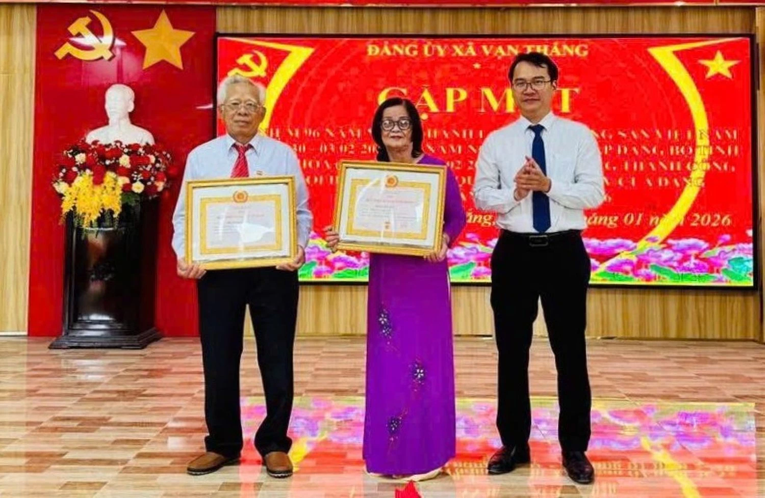 Ngày 30-1, Thường trực Đảng ủy xã Vạn Thắng tổ chức gặp mặt nhân kỷ niệm 96 năm Ngày thành lập Đảng Cộng sản Việt Nam (3-2-1930 - 3-2-2026), 96 năm Ngày thành lập Đảng bộ tỉnh Khánh Hòa (24-2-1930 - 24-2-2026), chào mừng thành công Đại hội đại biểu toàn quốc lần thứ XIV của Đảng, mừng Xuân Bính Ngọ 2026 và trao Huy hiệu Đảng đợt 3-2 cho 2 đảng viên.