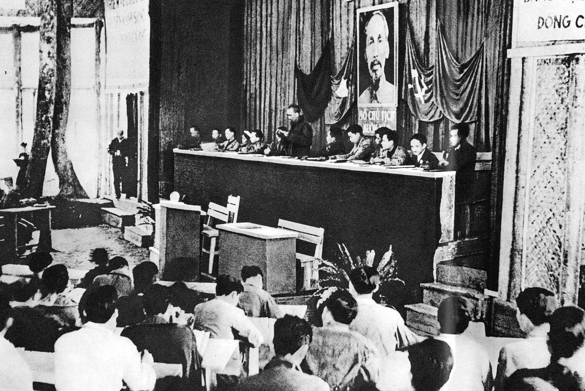 Chủ tịch Hồ Chí Minh đọc Báo cáo chính trị tại Đại hội đại biểu toàn quốc lần thứ II của Đảng tổ chức tại xã Vinh Quang, huyện Chiêm Hóa, tỉnh Tuyên Quang, tháng 2/1951. Ảnh: Tư liệu TTXVN