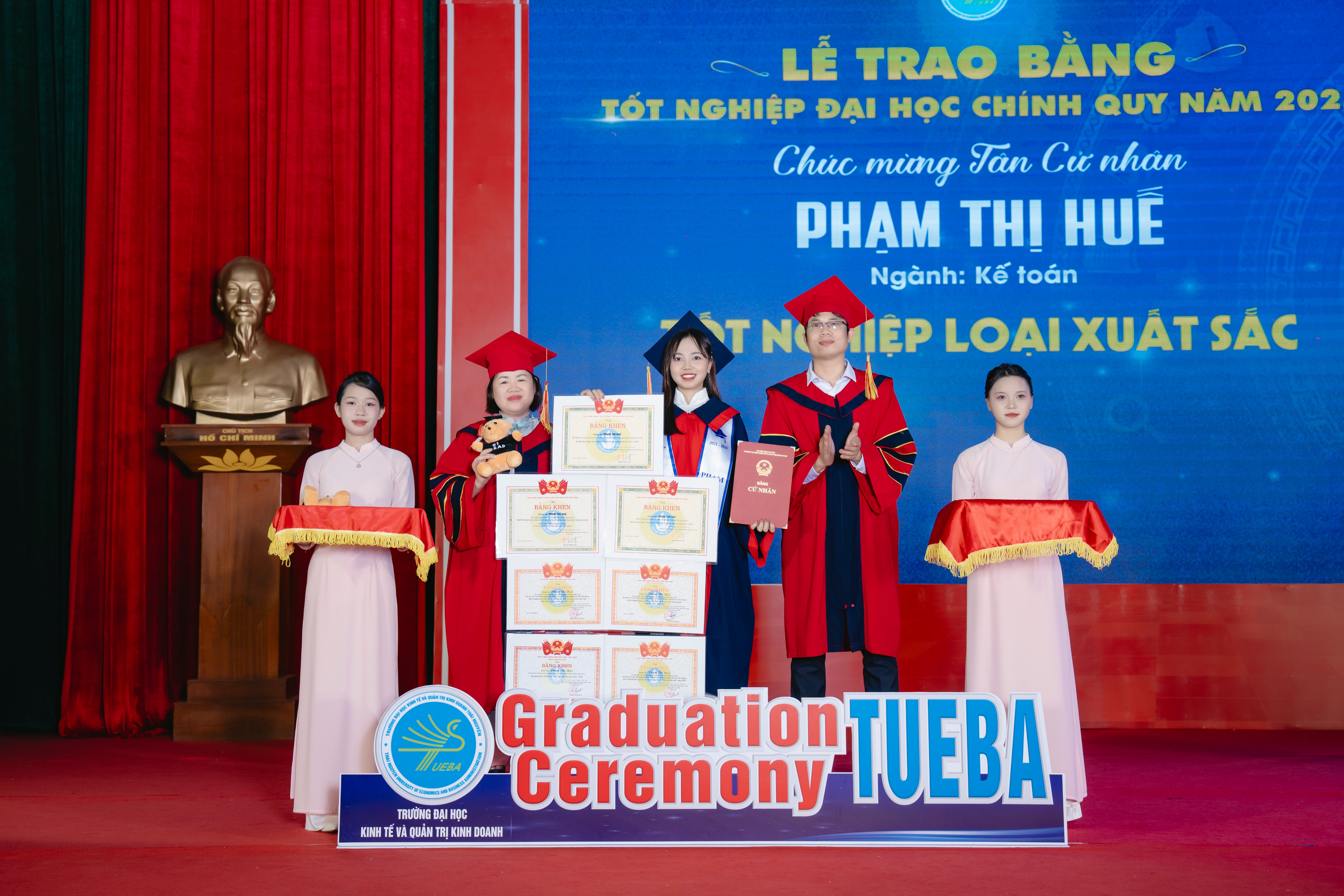 Tốt nghiệp cử nhân xuất sắc ngành Kế toán của Đại học Kinh tế và Quản trị Kinh doanh tỉnh Thái Nguyên, Phạm Thị Huế là tấm gương sinh viên truyền cảm hứng cho quyết tâm vươn lên khỏi hoàn cảnh khó khăn bằng những giá trị của tri thức, bản lĩnh vượt khó và tinh thần học tập bền bỉ.