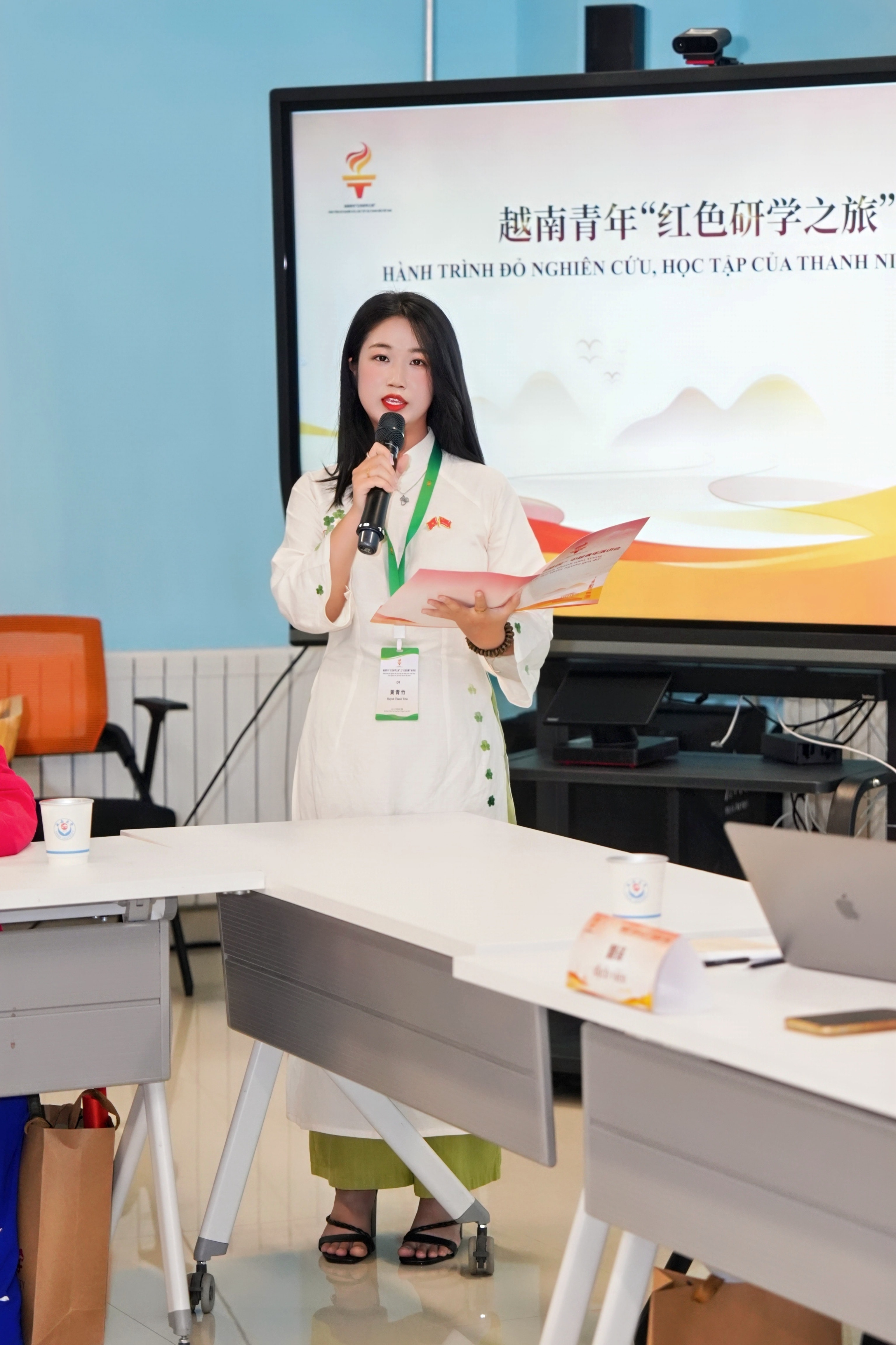 Đại biểu danh dự trình bày tham luận với chủ đề "Kế thừa nguồn gen đỏ" tại Diễn đàn thuyết trình thanh niên Trung - Việt.