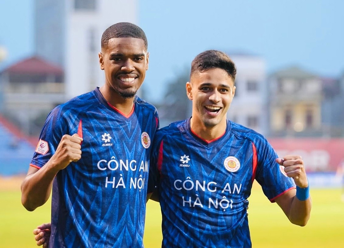 Alan (trái) mở tỉ số cho Công an Hà Nội ngay phút thứ 2. Ảnh CLB CAHN
