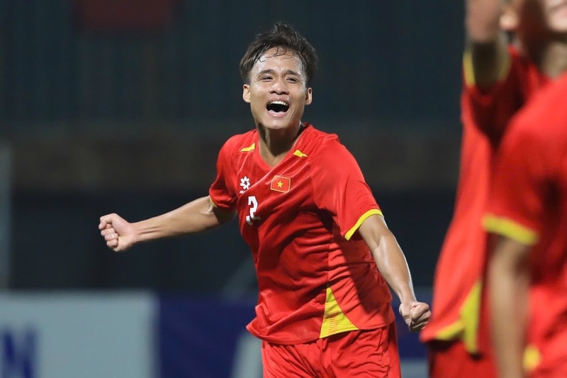 Mạnh Cường nâng tỉ số 2-0 cho U17 Việt Nam. Ảnh Minh Dân