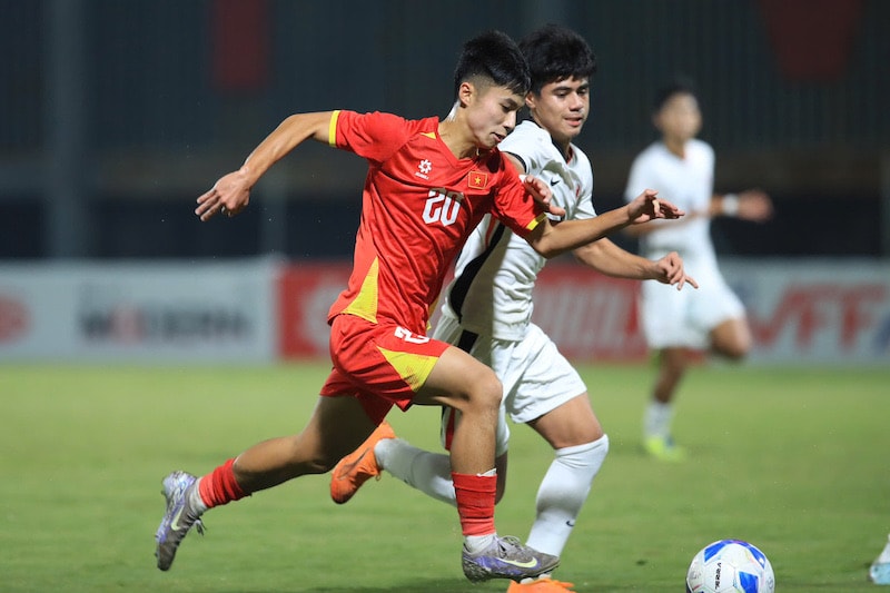 Dù kiểm soát thế trận, U17 Việt Nam gặp không ít khó khăn trong khâu dứt điểm. Ảnh Minh Dân