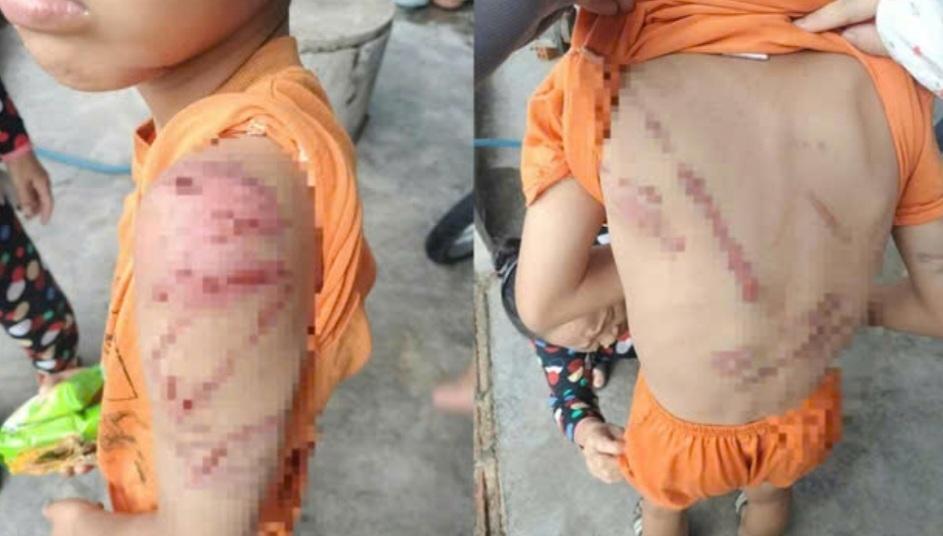 Hình ảnh cháu bé bị đánh thương tích.
