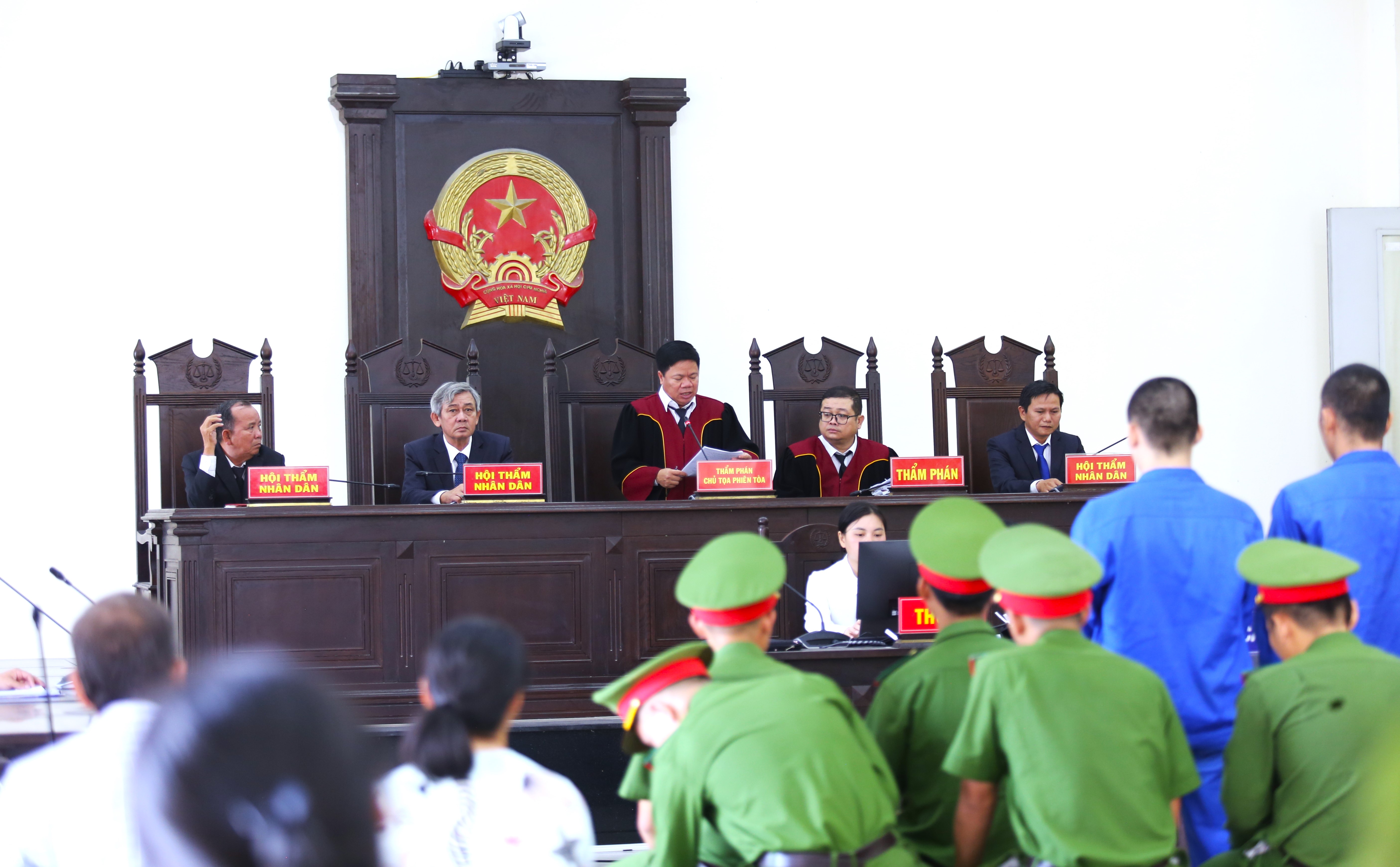 Các bị cáo tại phiên tòa xét xử. Ảnh: HUỲNH DU