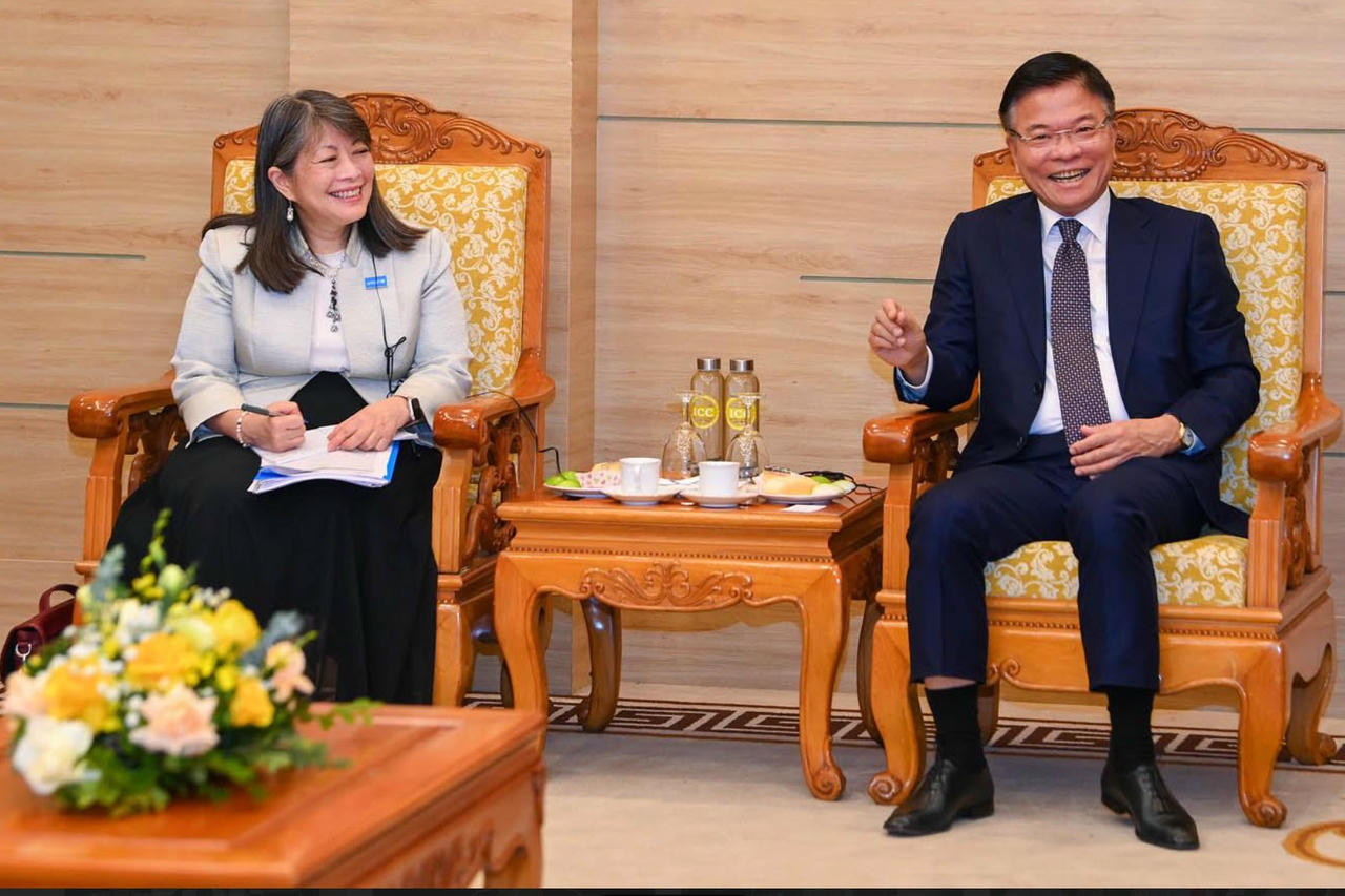 Phó Thủ tướng Chính phủ Lê Thành Long (bên phải) tiếp chào xã giao Giám đốc UNICEF khu vực Đông Á - Thái Bình Dương. (Nguồn: BYT)
