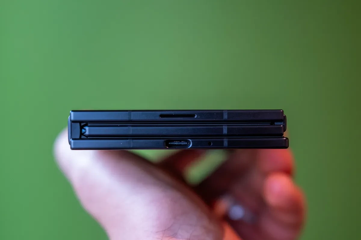 Bản lề Galaxy Z TriFold hoạt động ổn định, không quá cứng cũng không quá lỏng, còn các tấm màn hình được Samsung Electronics làm rất mỏng, gần chạm mức tối thiểu theo độ dày của cổng USB-C
