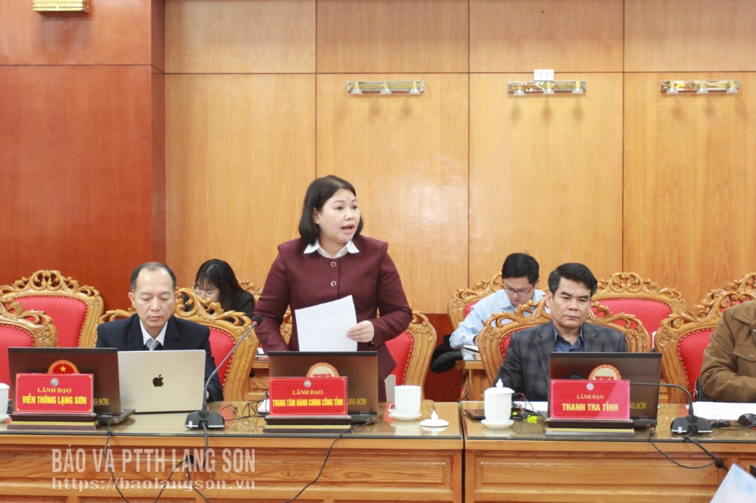 Đại diện Trung tâm Phục vụ hành chính công tỉnh phát biểu tại cuộc họp