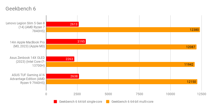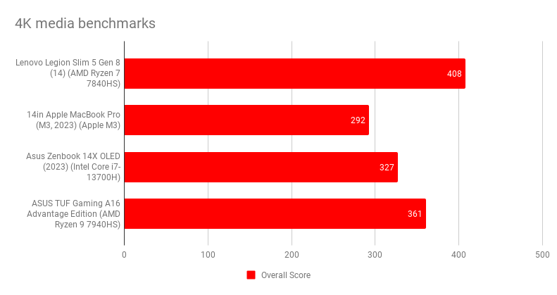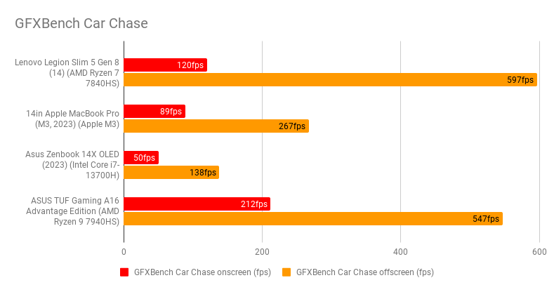 Trong các bài kiểm tra hiệu năng, máy đạt 408 điểm trong bài kiểm tra đa phương tiện 4K của Expert Reviews, cao hơn so với M3 MacBook Pro 14 (292 điểm). Về khả năng chơi game, máy đạt 117 FPS trong game Wolfenstein: Youngblood (Full HD, ray tracing) và 95 FPS trong Cyberpunk 2077 (Full HD, không ray tracing). Khi bật công nghệ DLSS và Frame Generation, hiệu suất còn được cải thiện đáng kể.