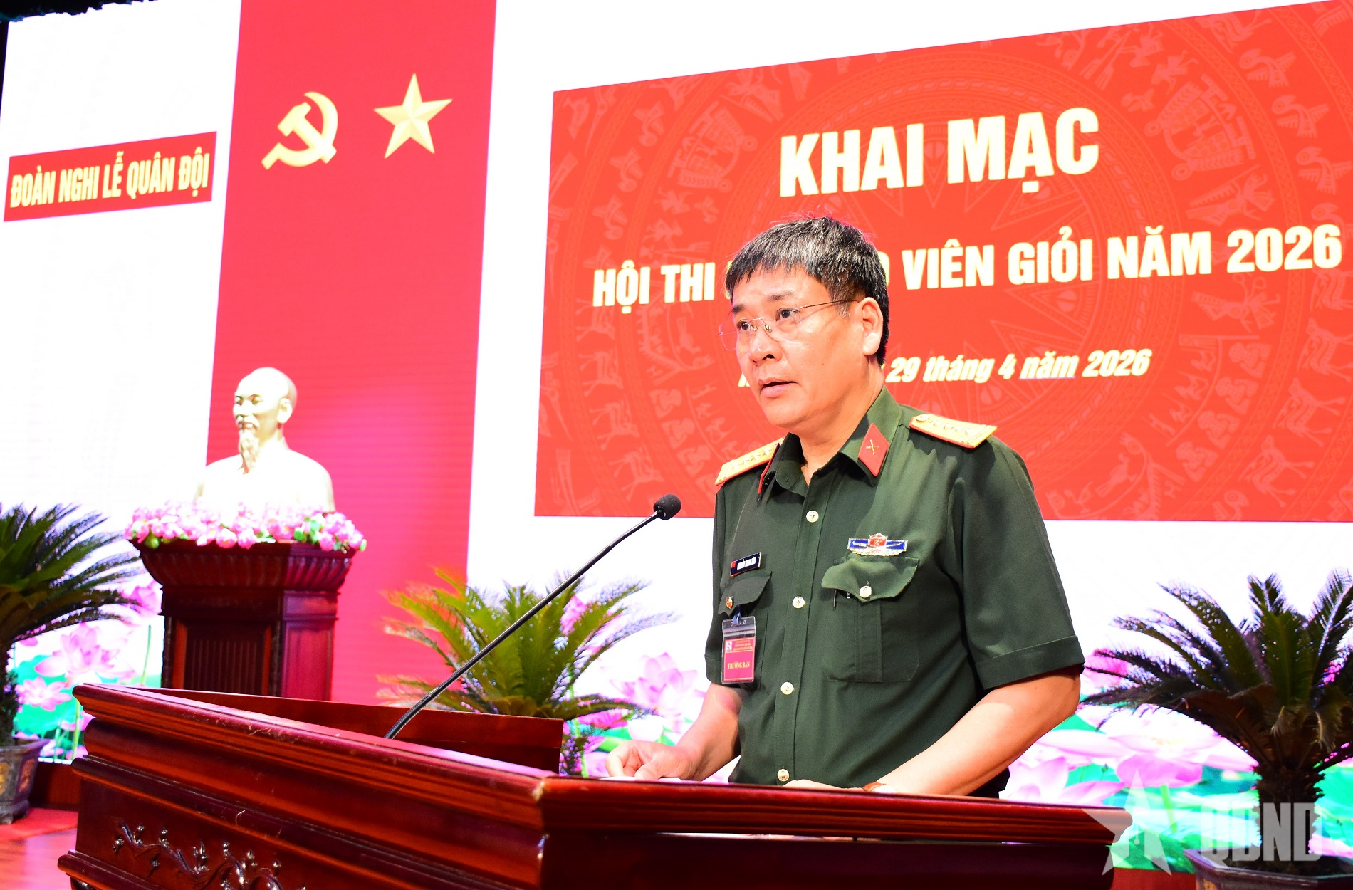 Thủ trưởng Đoàn nghi lễ Quân đội trao chứng nhận danh hiệu báo cáo viên giỏi năm 2026.