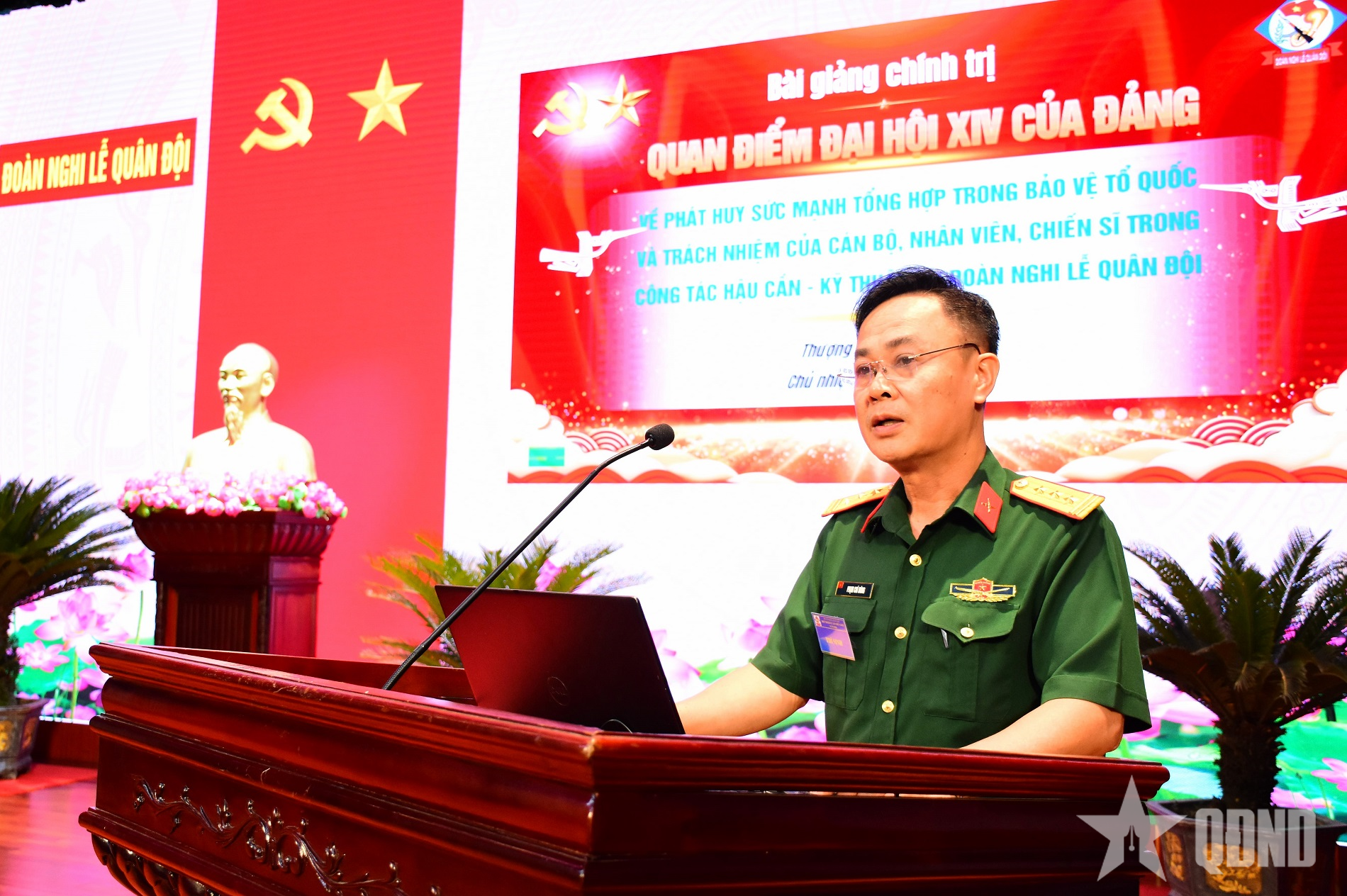 Phát biểu tại hội thi, Đại tá Nguyễn Trung Tâm nhấn mạnh: Hội thi đánh giá thực chất năng lực, trình độ, phương pháp, tác phong của đội ngũ báo cáo viên trong toàn Đoàn. Đây là cơ sở để tiếp tục bồi dưỡng, nâng cao kiến thức toàn diện, nhất là kỹ năng tuyên truyền, thuyết trình, khả năng nắm bắt và định hướng tư tưởng bộ đôi. Trọng tâm là tuyên truyền sâu rộng, hiệu quả nghị quyết đại hội đảng các cấp, làm cho mỗi cán bộ, chiến sĩ nhận thức đầy đủ, sâu sắc, thống nhất cao về mục tiêu, nhiệm vụ, từ đó chuyển hóa thành hành động cụ thể trong thực hiện nhiệm vụ.