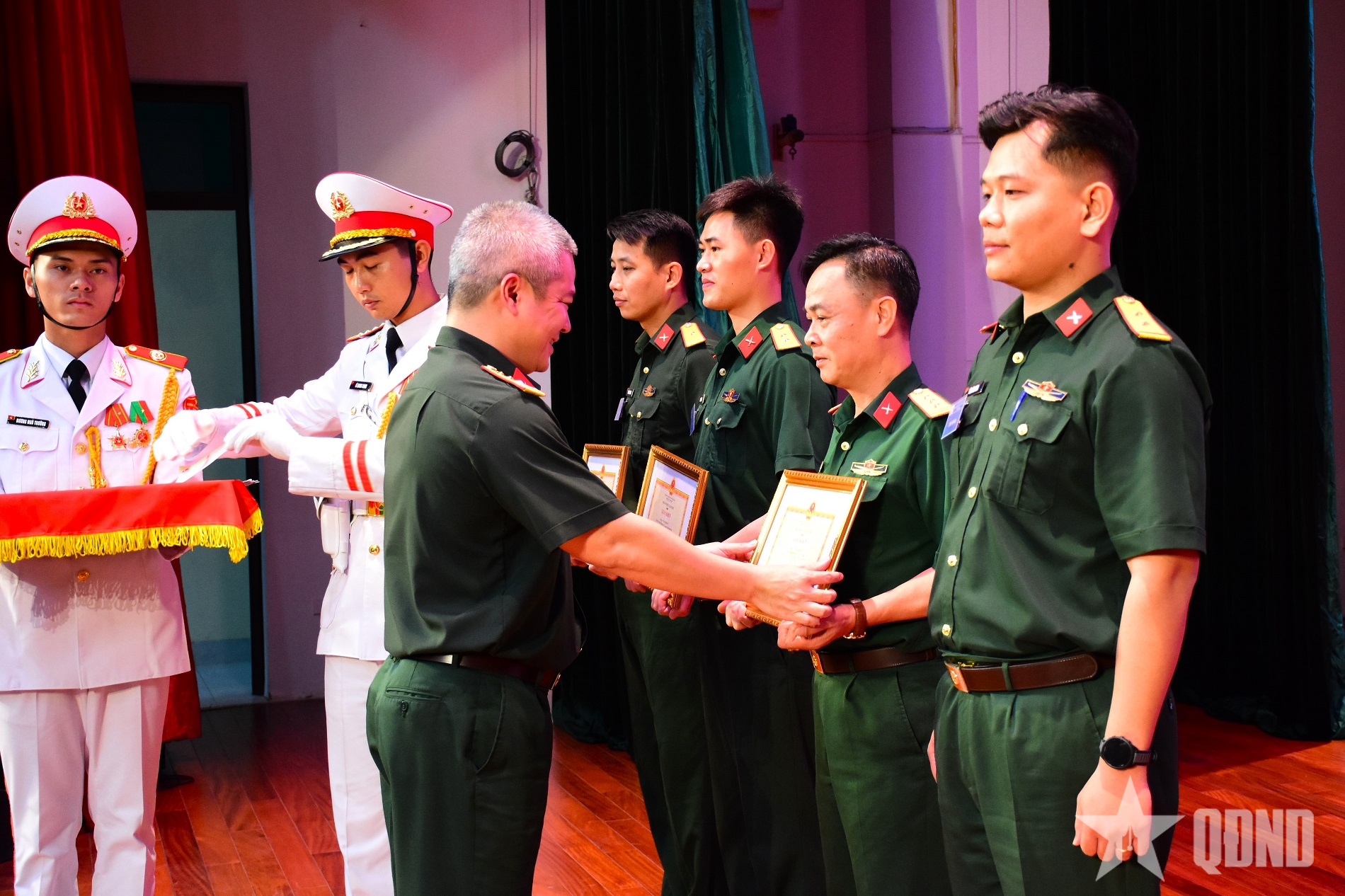 Thủ trưởng Đoàn nghi lễ Quân đội trao giải tặng các cá nhân đoạt giải Nhất.