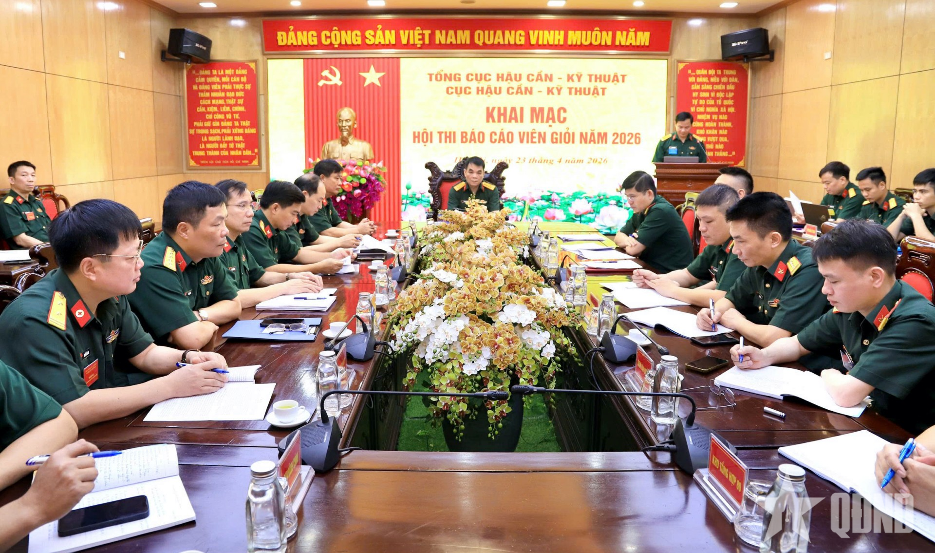 Phát biểu chỉ đạo, Đại tá Đỗ Trung Thành, Bí thư Đảng ủy, Phó cục trưởng Cục Hậu cần-Kỹ thuật nhấn mạnh: Để tuyên truyền, đưa Nghị quyết Đại hội XIV của Đảng và nghị quyết đại hội đảng các cấp đi vào cuộc sống, đội ngũ báo cáo viên, tuyên truyền viên có vai trò rất quan trọng. Hội thi báo cáo viên giỏi năm 2026 là dịp để đánh giá thực chất trình độ, năng lực tiến hành công tác tuyên truyền của đội ngũ báo cáo viên các cấp; lựa chọn những đồng chí có năng lực, thành tích tốt tham gia hội thi cấp trên. Yêu cầu ban tổ chức, ban giám khảo tổ chức hội thi bảo đảm chất lượng, chấm thi khách quan, đánh giá chính xác kết quả từng thí sinh.