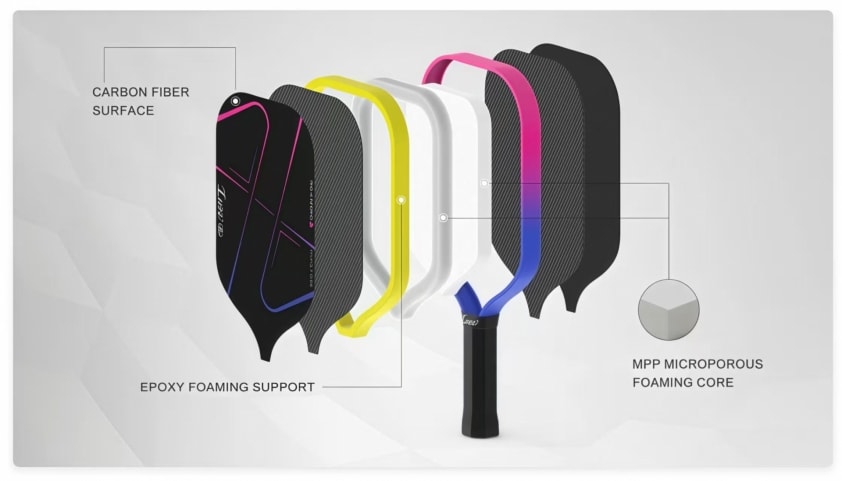 Điểm khác biệt lớn nhất của Luzz Pro 4 Inferno nằm ở cấu trúc lõi. Thay vì sử dụng lõi dạng tổ ong (honeycomb) phổ biến, vợt được trang bị lõi dạng bọt với mật độ cao. Công nghệ này giúp hấp thụ lực tác động từ bóng hiệu quả hơn, đồng thời giảm rung động một cách rõ rệt khi tiếp xúc. Trải nghiệm thực tế cho thấy cảm giác bóng khá đầm tay, đặc biệt trong những cú đánh mạnh từ cuối sân, cho phép người chơi tự tin thực hiện các pha bóng mà không lo mất kiểm soát.