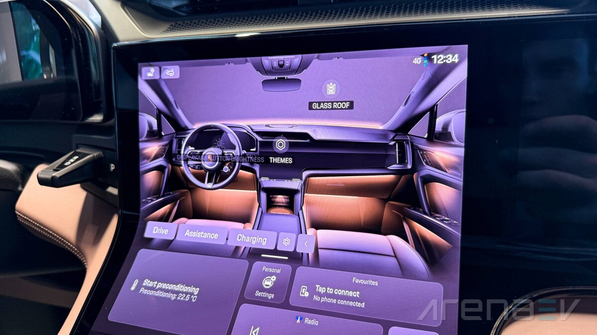 Người dùng có thể tùy chỉnh chế độ lái và cánh gió sau ngay trong xe mà không cần đạt tốc độ kích hoạt tự động. Hệ thống đèn nội thất có nhiều chế độ nhưng chưa được kích hoạt đầy đủ trên mẫu thử nghiệm.