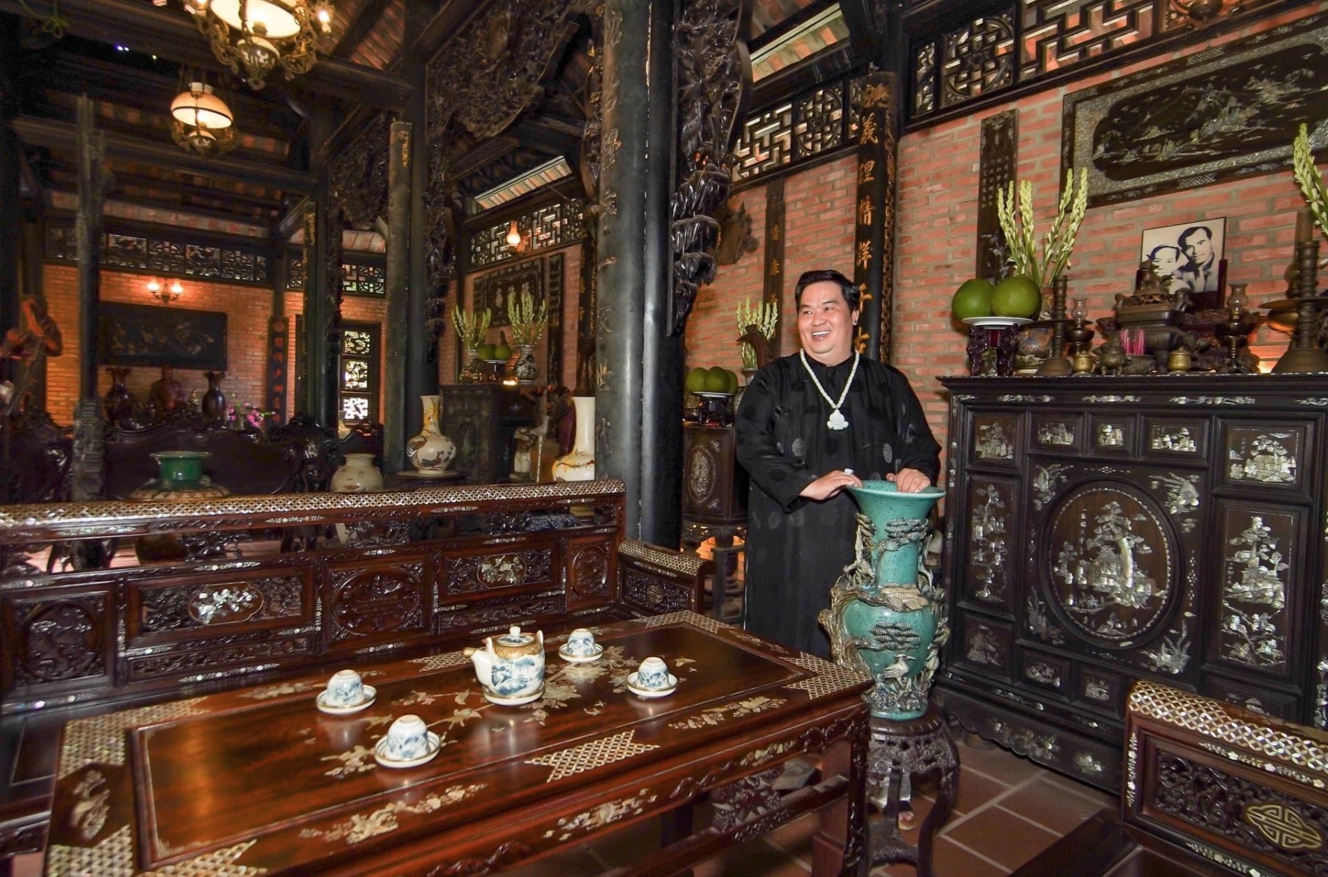 Cơ ngơi này lên đến hơn 1.600m2, được xây dựng theo phong cách nhà cổ. Anh đã dành ra 5 năm để nghiên cứu và tìm hiểu cách xây dựng, trang trí sao cho đúng với kiến trúc xưa. Đặc biệt, nam nghệ sĩ còn đầu tư hồ cá koi trị giá tới 5 tỷ đồng.