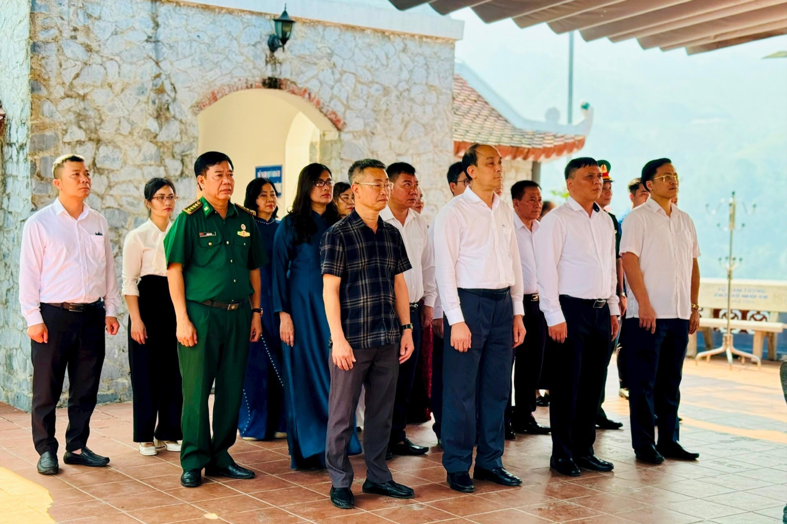 Đoàn đại biểu thành phố Hà Nội thành kính thực hiện nghi thức tưởng niệm các anh hùng liệt sĩ tại Điểm cao 468, tỉnh Tuyên Quang. Ảnh: Mai Hoa