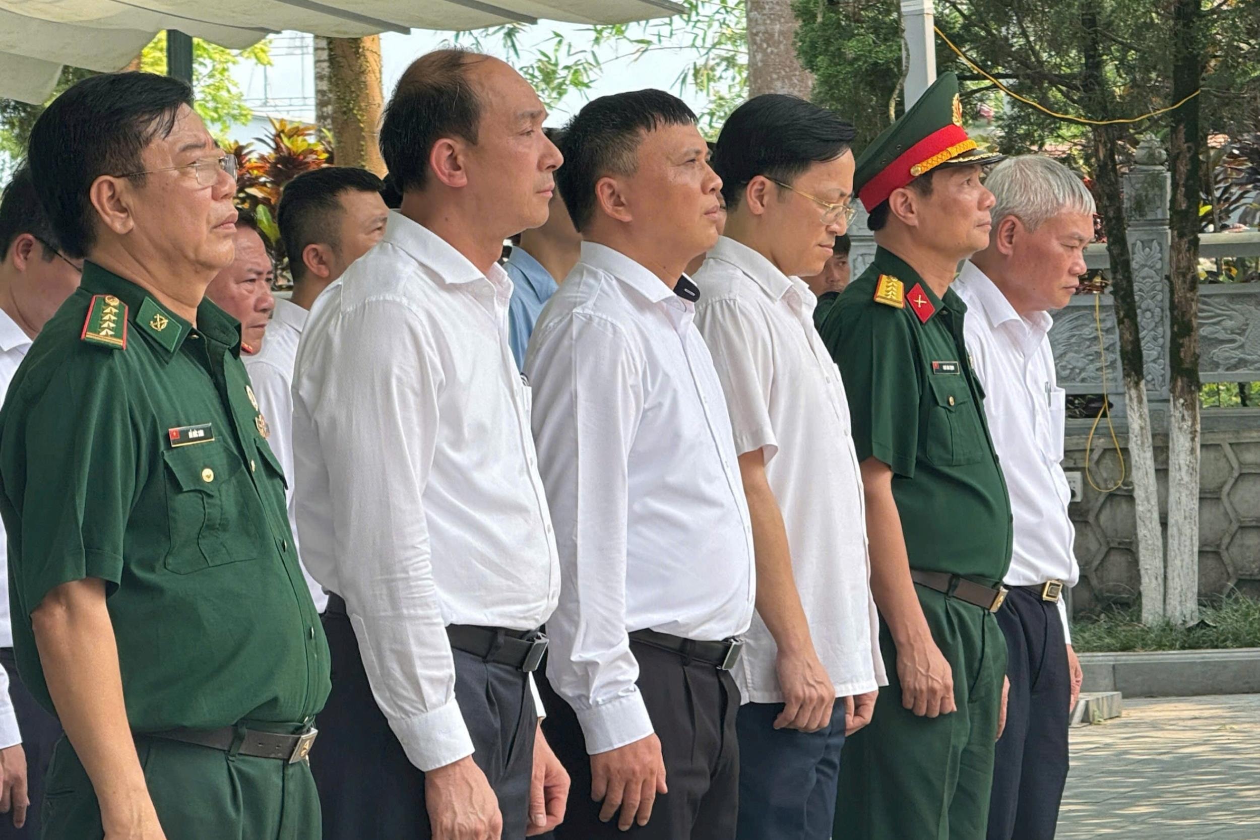 Các đại biểu thuộc đoàn công tác Hà Nội kính cẩn thực hiện nghi thức tưởng niệm các anh hùng liệt sĩ tại Nghĩa trang liệt sĩ quốc gia Vị Xuyên, tỉnh Tuyên Quang. Ảnh: Mai Hoa