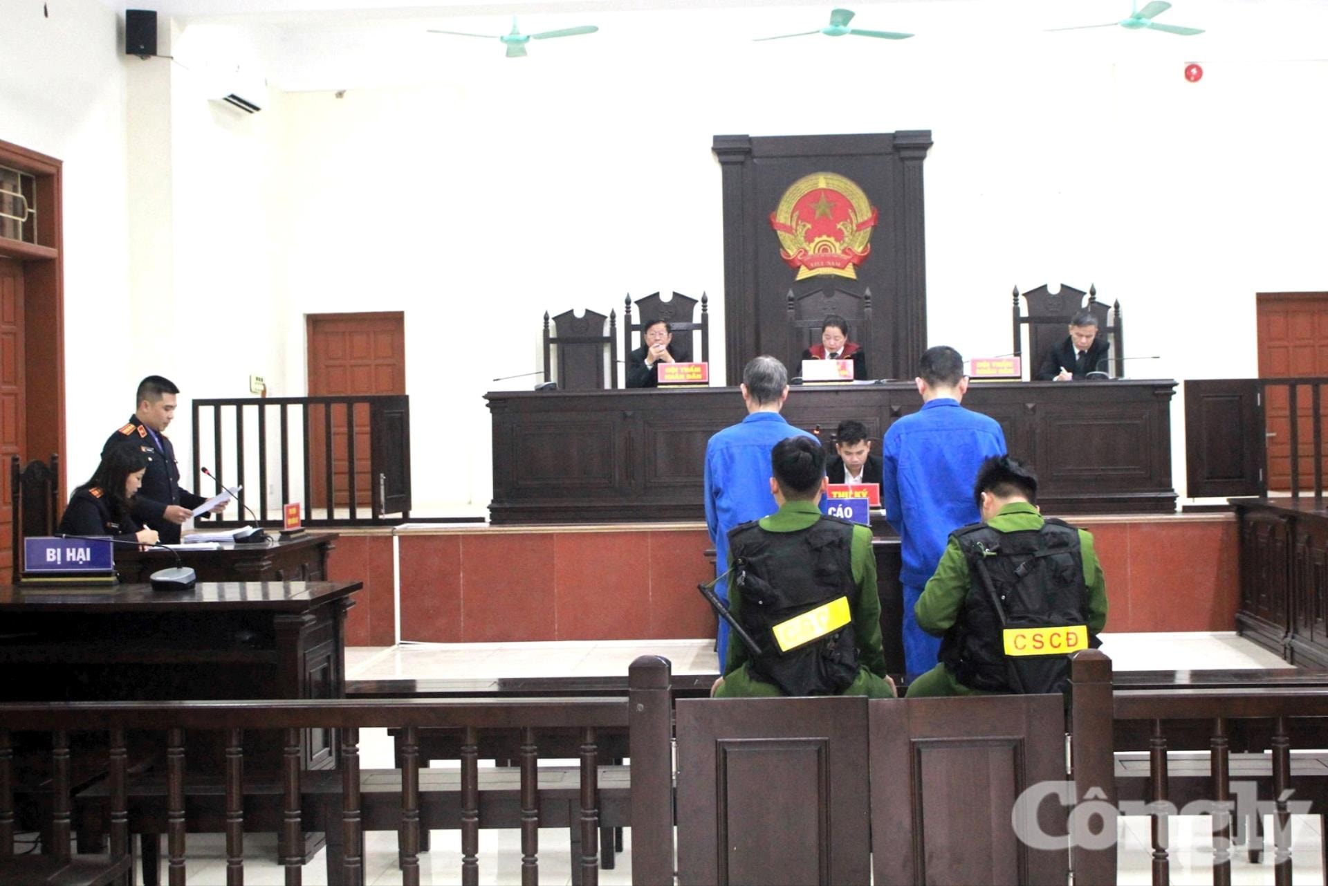 Hai bị cáo Vũ Viết Tá và Nguyễn Viết Nam tại phiên tòa sơ thẩm.