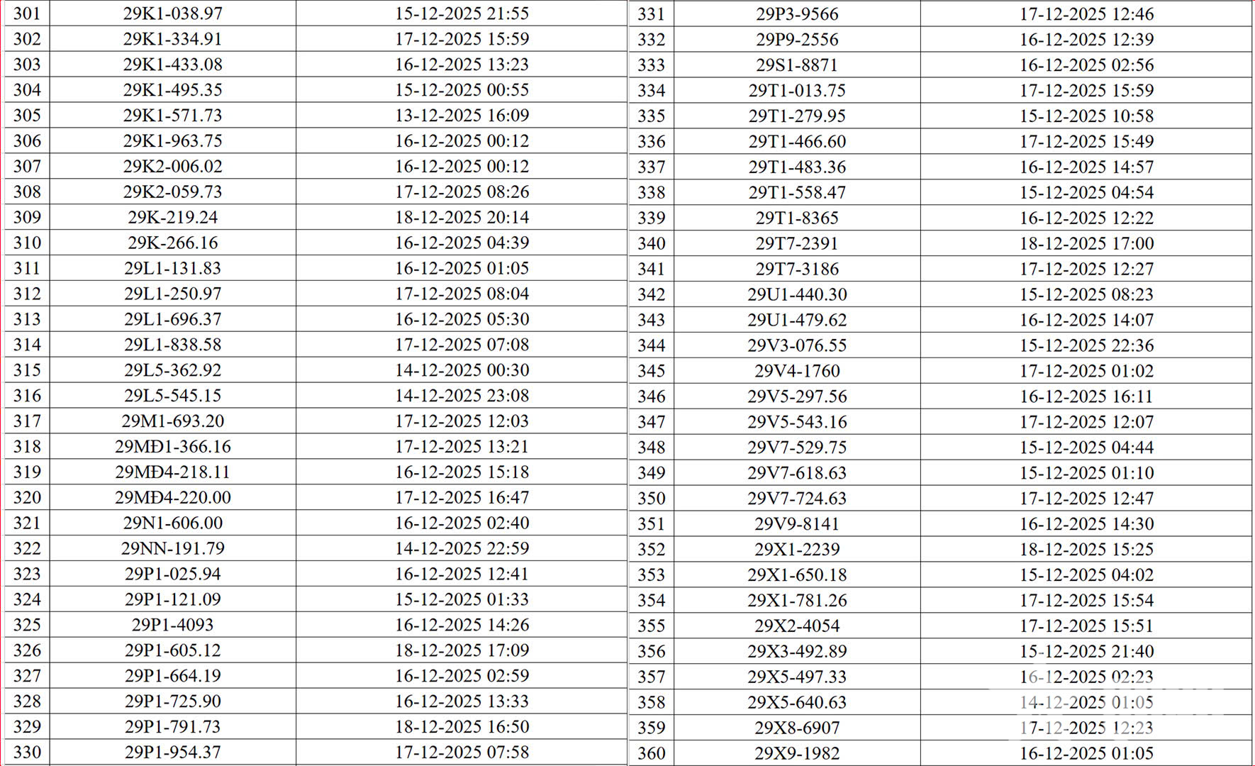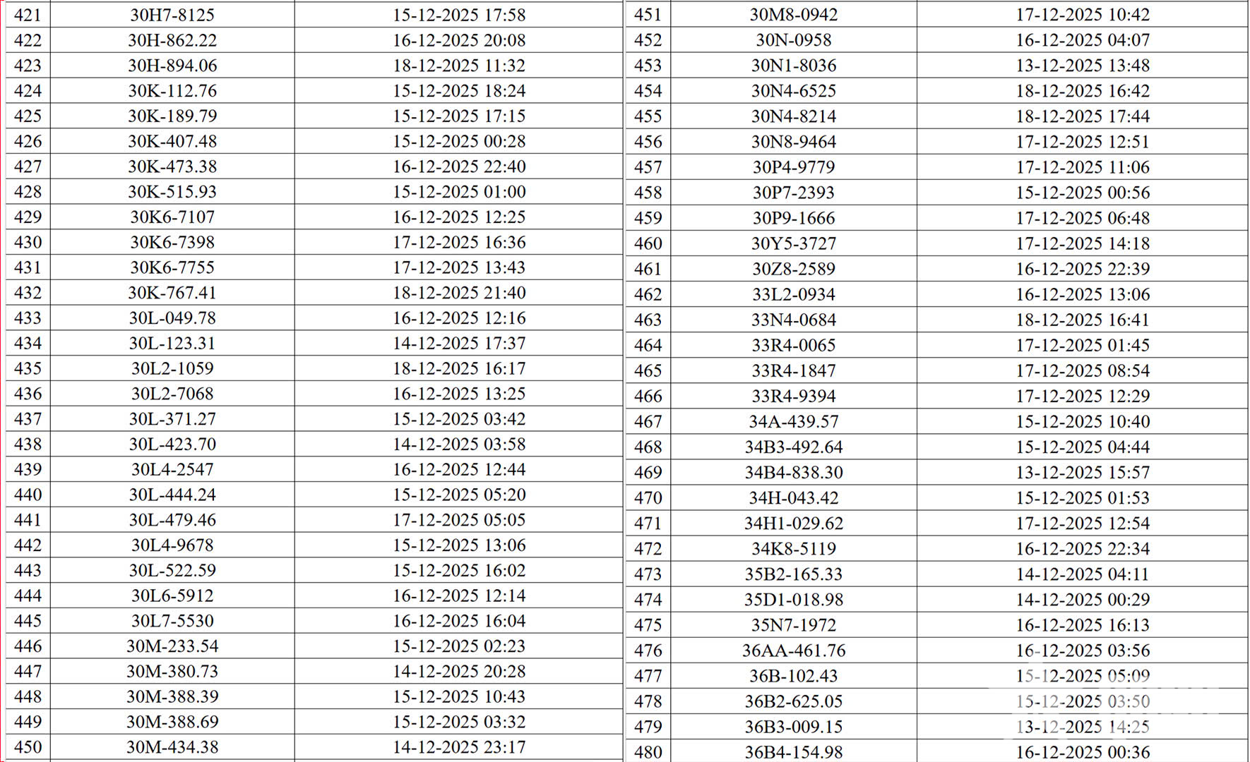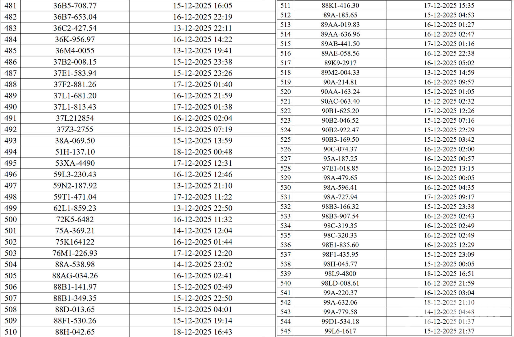 545 phương tiện vi phạm bao gồm cả ô tô và xe máy bị camera AI ghi nhận phạt nguội (từ ngày 13-12 đến 18-12-2025).