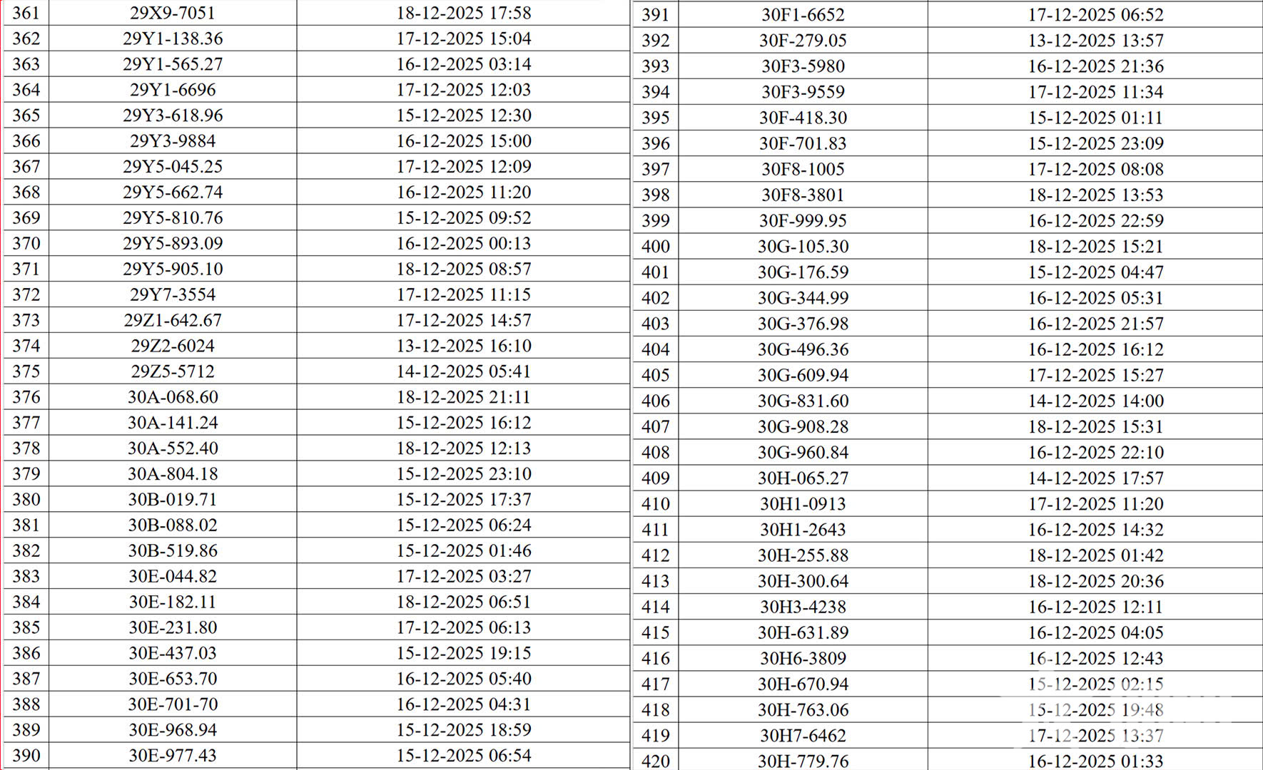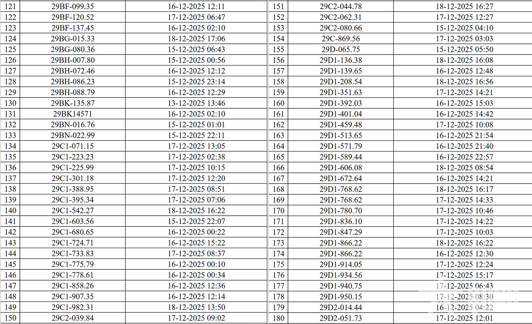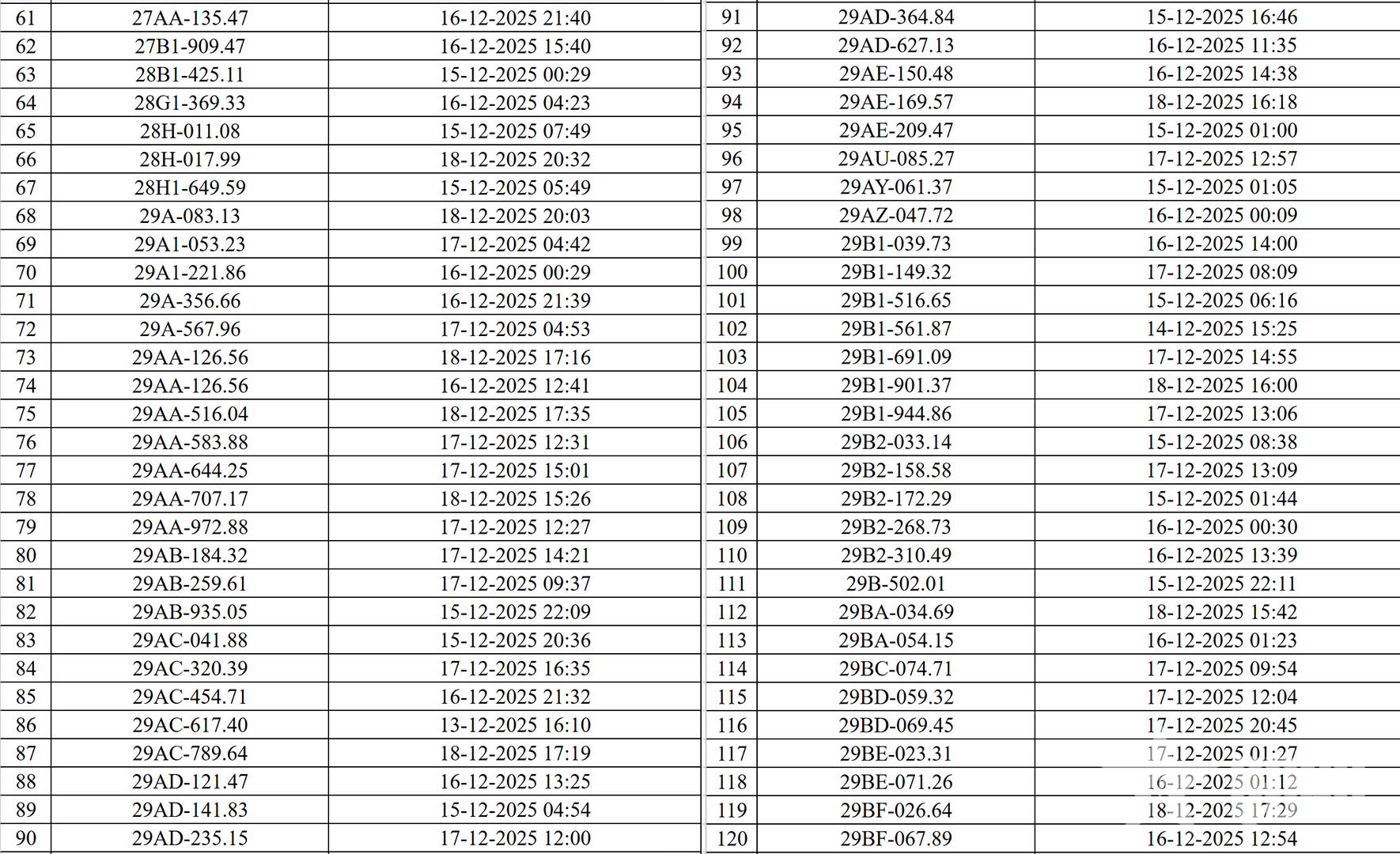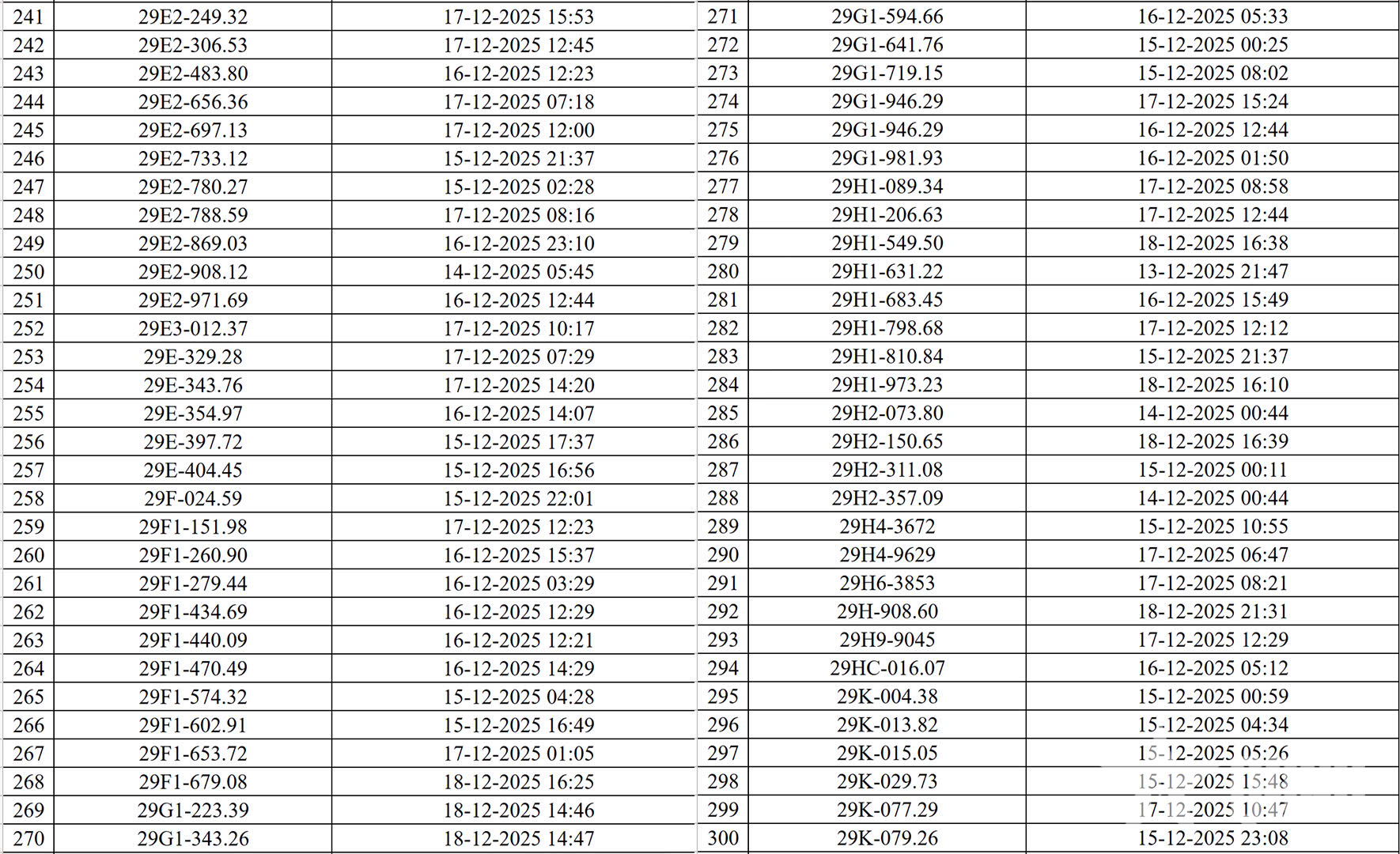 545 phương tiện vi phạm bao gồm cả ô tô và xe máy bị camera AI ghi nhận phạt nguội (từ ngày 13-12 đến 18-12-2025).