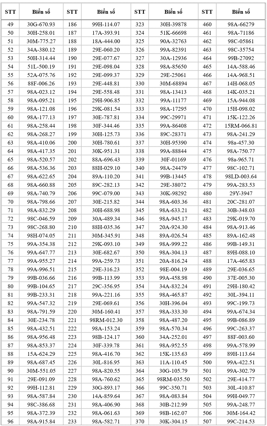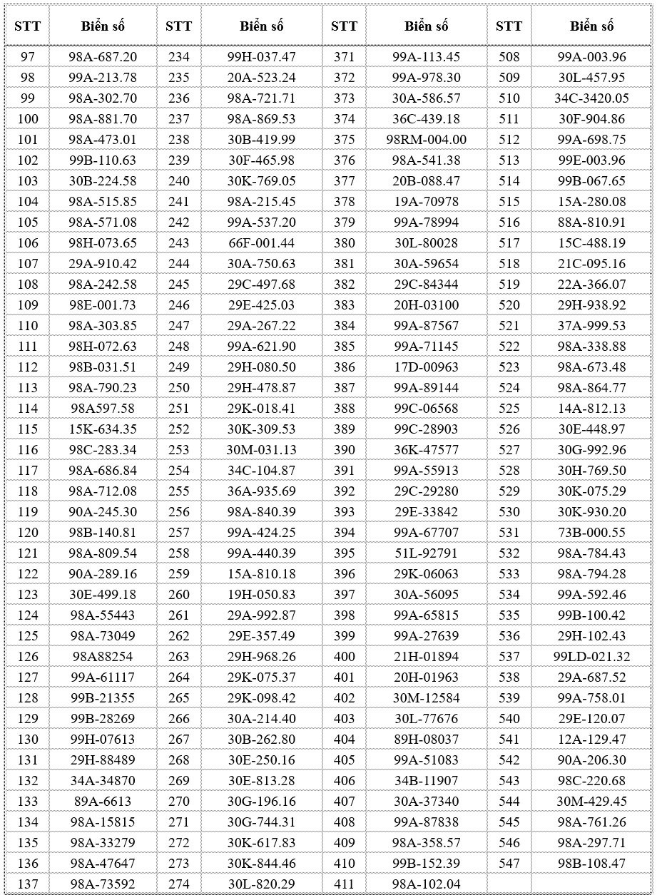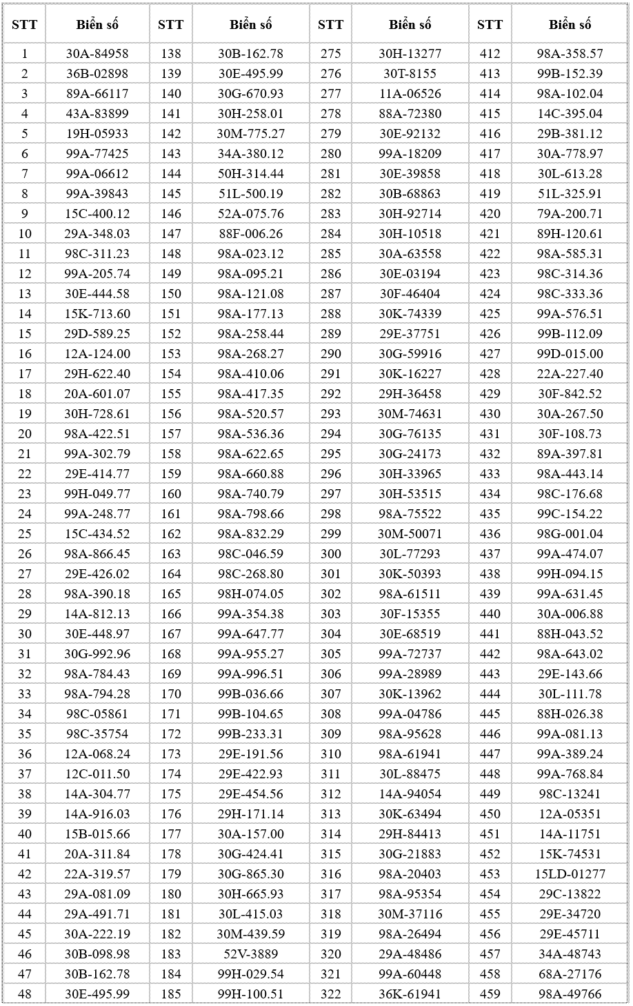 Danh sách các xe bị phạt nguội vi phạm tốc độ như sau: