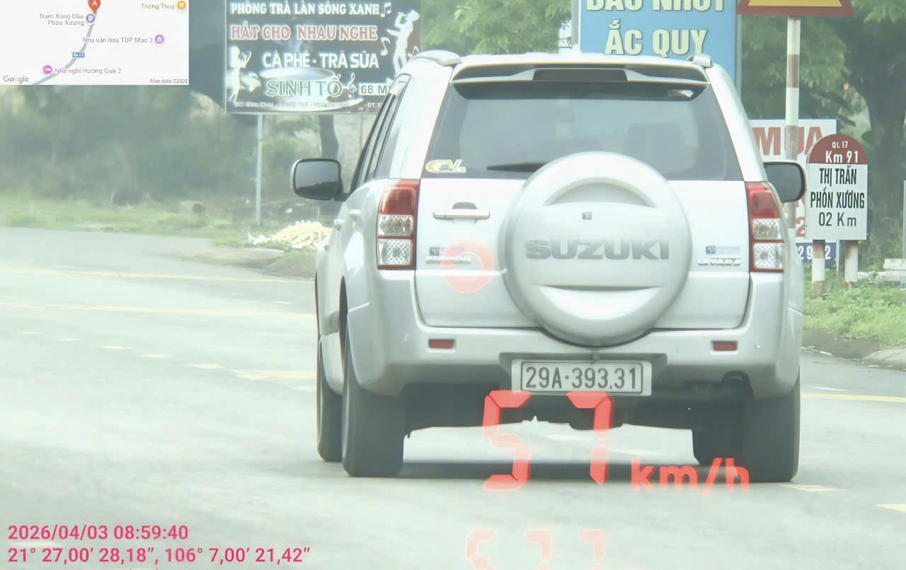 Xe ô tô chạy quá tốc độ trên Quốc lộ 17, tỉnh Bắc Ninh. (Ảnh: Công an Bắc Ninh)