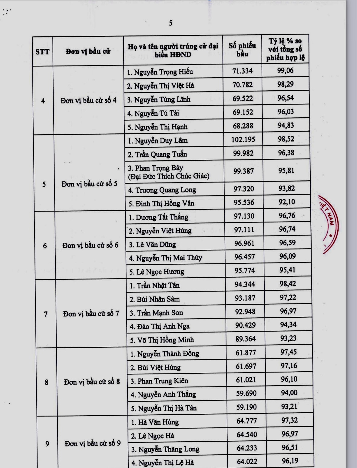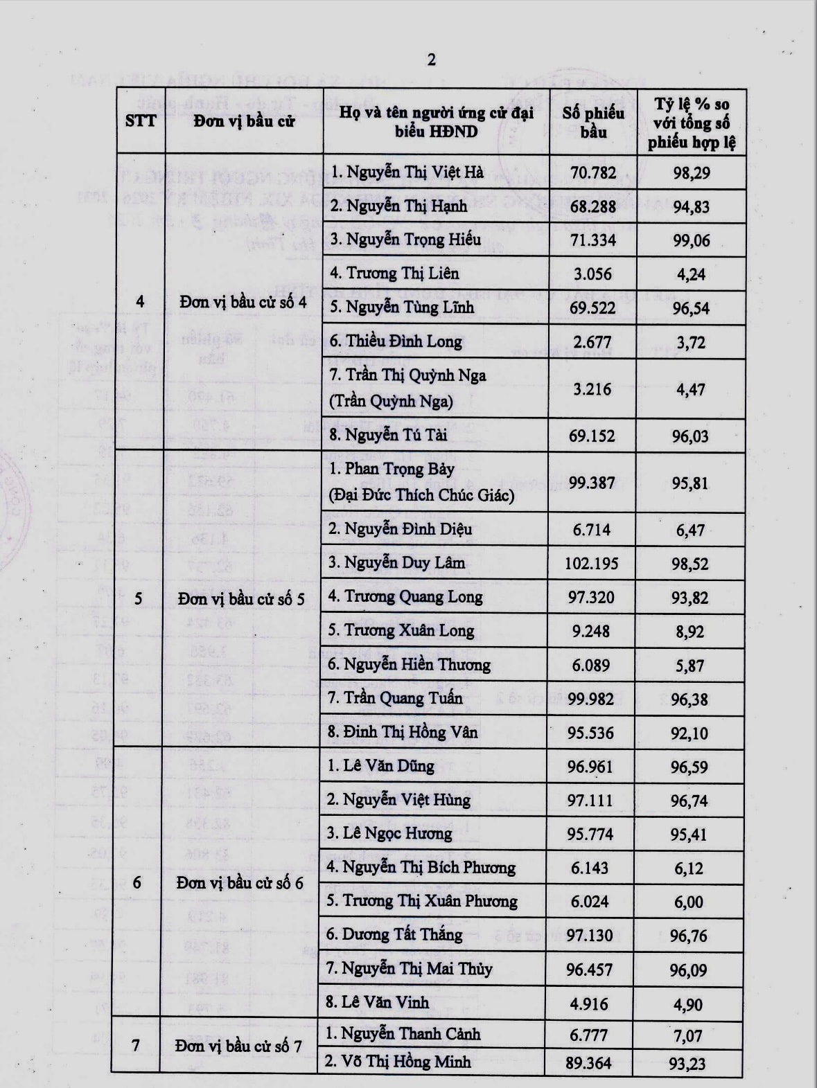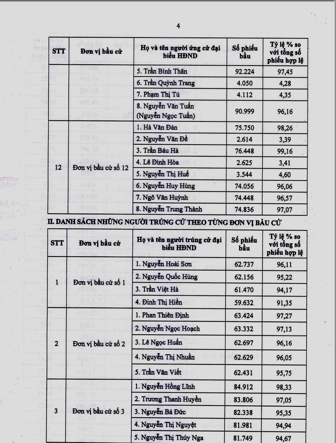 Theo đó, HĐND tỉnh Hà Tĩnh nhiệm kỳ 2026 - 2031 có 58 đại biểu, được bầu từ 94 ứng cử viên, với tỷ lệ phiếu bầu đạt cao, từ 91,35% đến 99,16%. Các đại biểu trúng cử bảo đảm tiêu chuẩn, điều kiện theo quy định, cơ cấu hợp lý về giới tính, độ tuổi, trình độ chuyên môn; đại diện cho các tầng lớp Nhân dân, dân tộc, tôn giáo trên địa bàn.