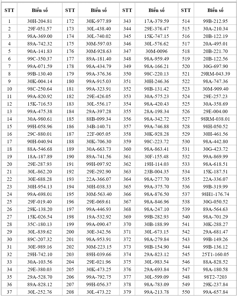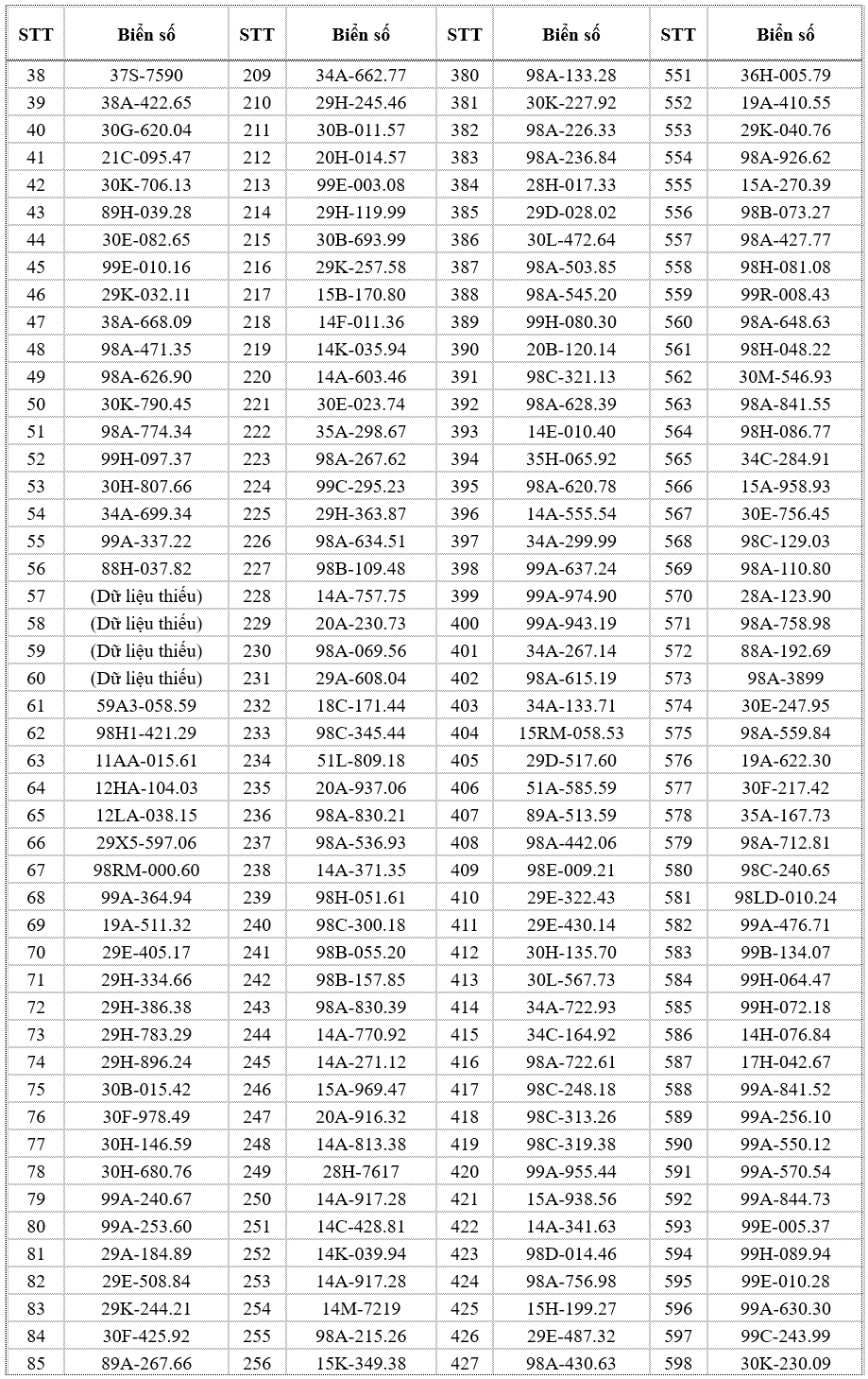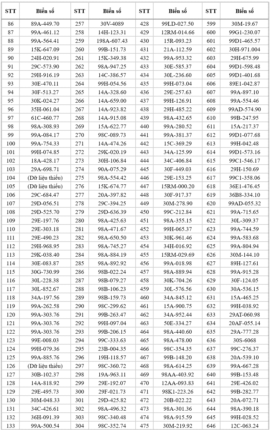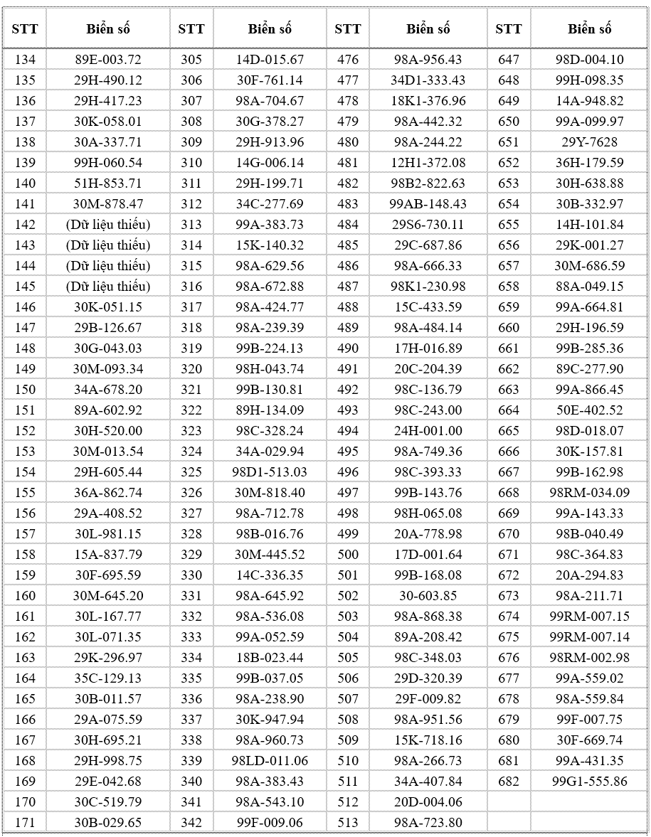 Danh sách 682 xe vi phạm cụ thể như sau: