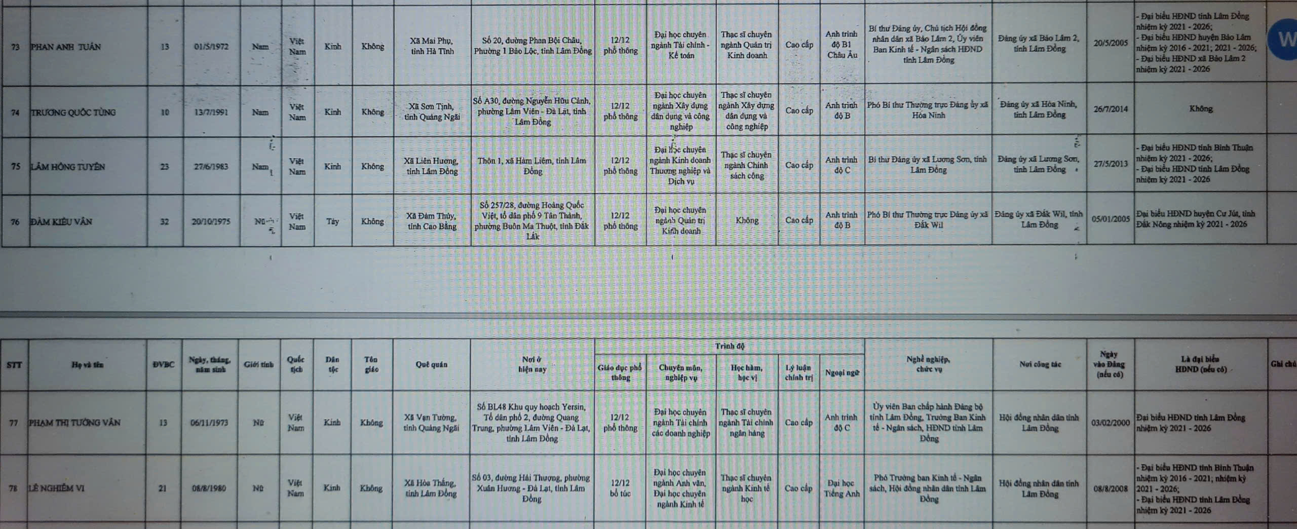 Theo đó, HĐND tỉnh Lâm Đồng nhiệm kỳ 2026 – 2031 có 85 đại biểu. Kết quả, số lượng đại biểu HĐND tỉnh được bầu bảo đảm đúng cơ cấu, thành phần và số lượng đã được ấn định.