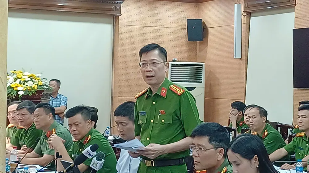 Đại tá Chu An Thanh- Trưởng Phòng Cảnh sát kinh tế, Công an TP Hà Nội cung cấp thông tin cho báo chí.