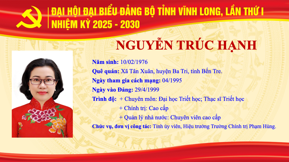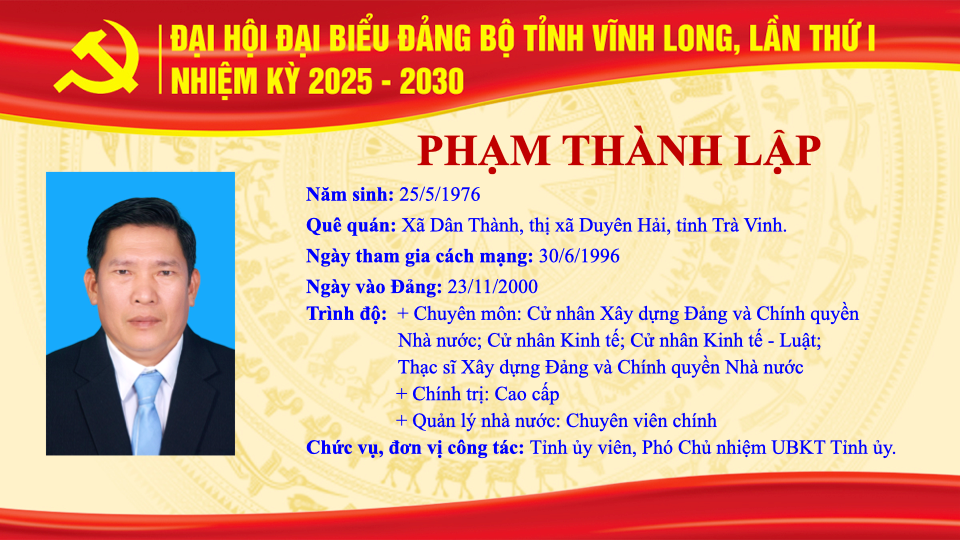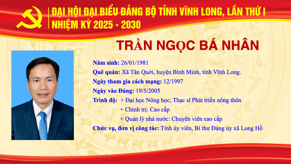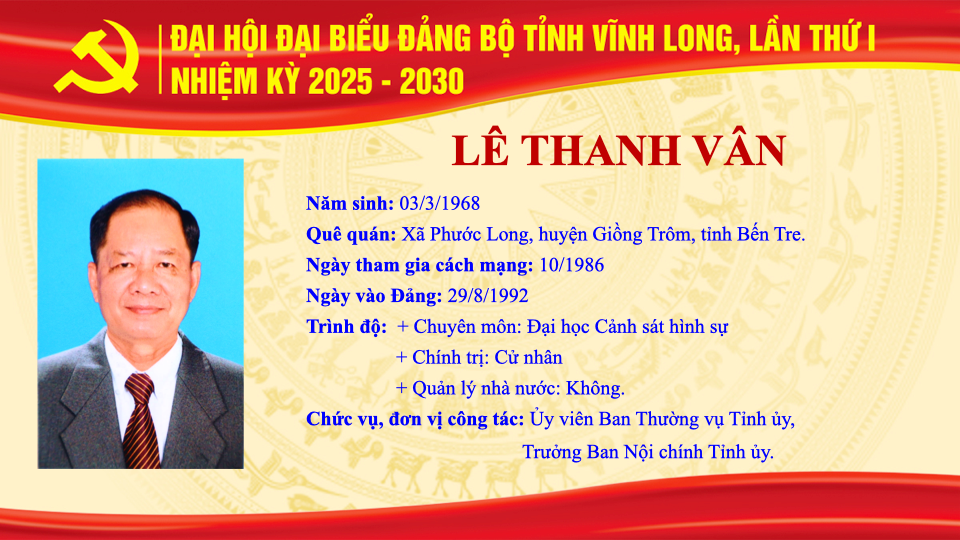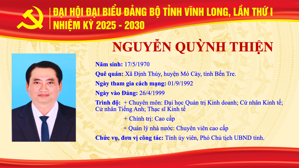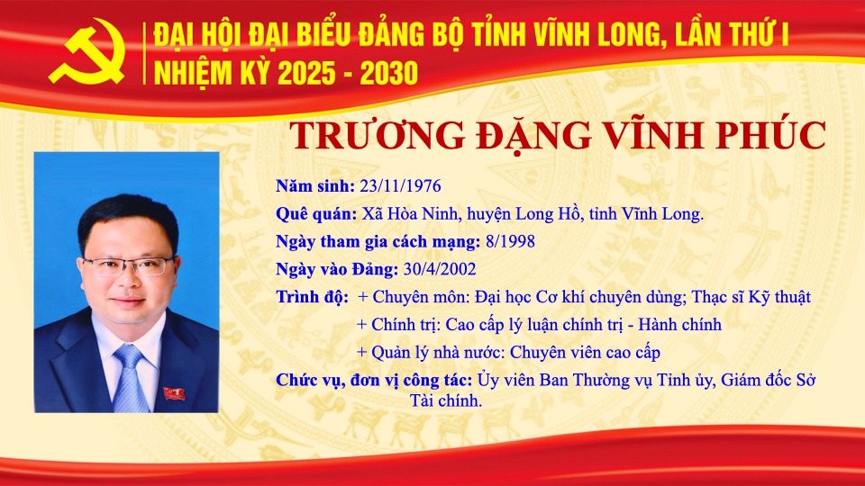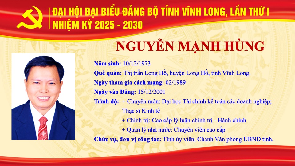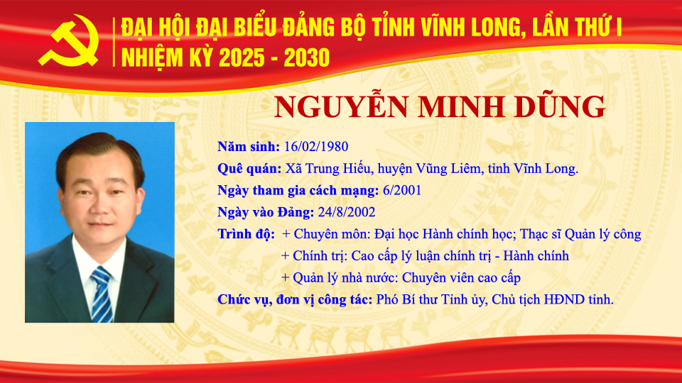 Danh sách Ban Chấp hành, Ban Thường vụ Tỉnh ủy Vĩnh Long nhiệm kỳ 2025 - 2030