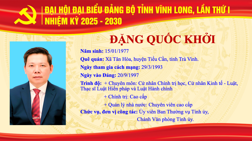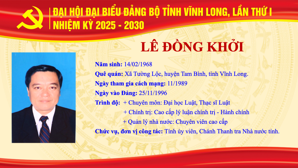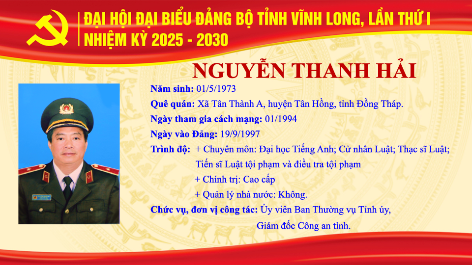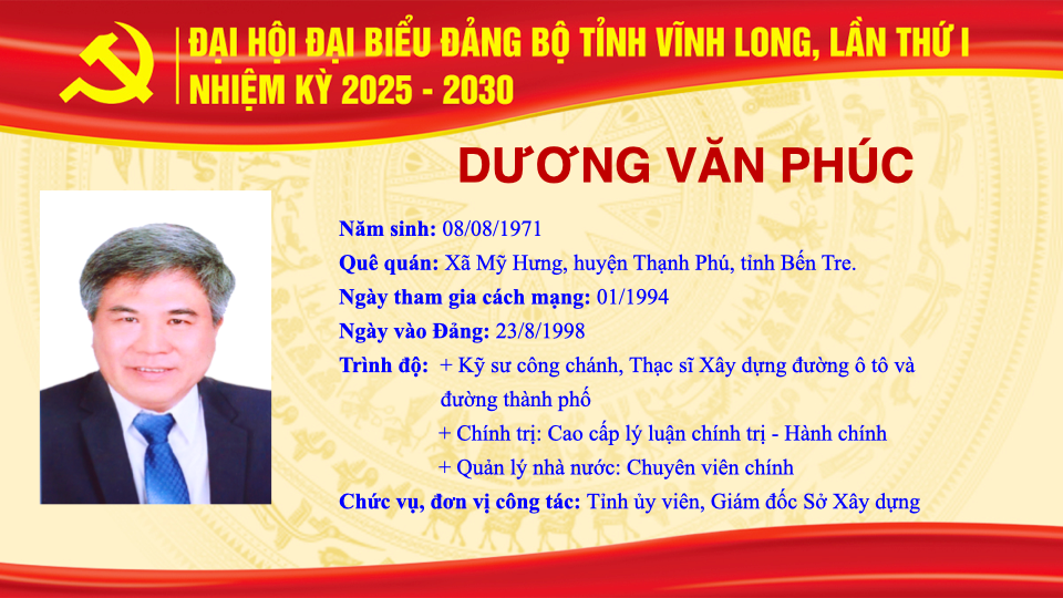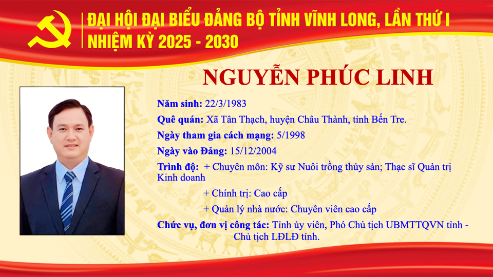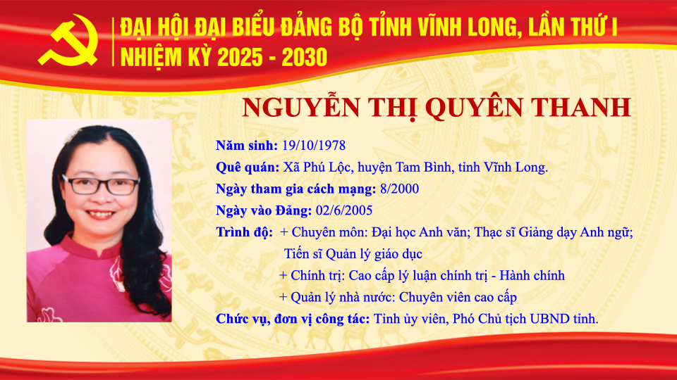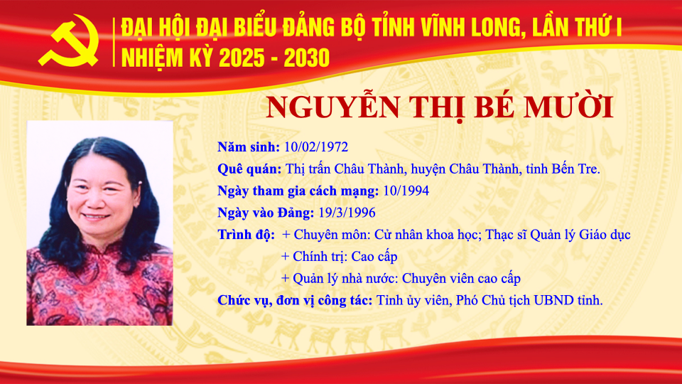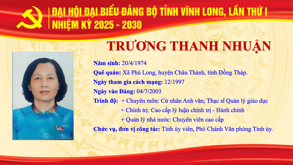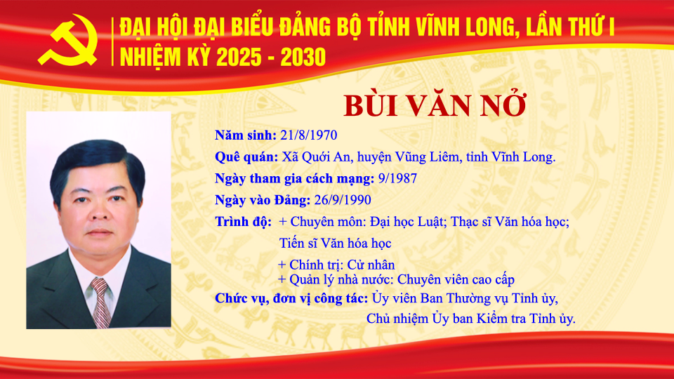 Danh sách Ban Chấp hành, Ban Thường vụ Tỉnh ủy Vĩnh Long nhiệm kỳ 2025 - 2030