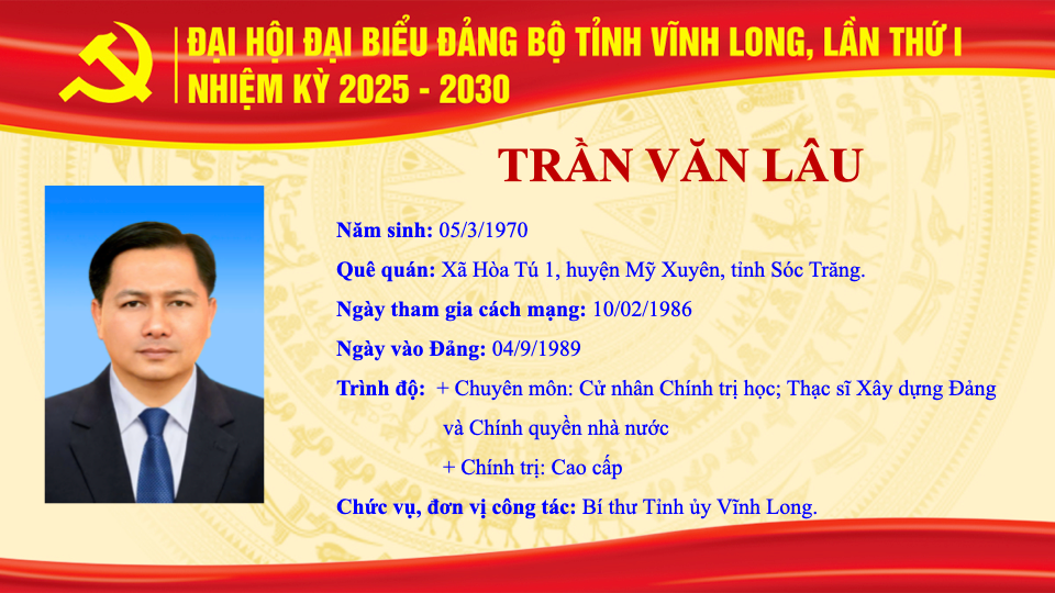 Đồng chí Trần Văn Lâu được chỉ định làm Bí thư Tỉnh ủy Vĩnh Long