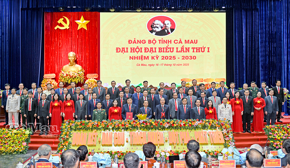 Đại hội đại biểu Đảng bộ tỉnh Cà Mau lần thứ I, nhiệm kỳ 2025-2030 chính thức khai mạc sáng 17/10/2025.