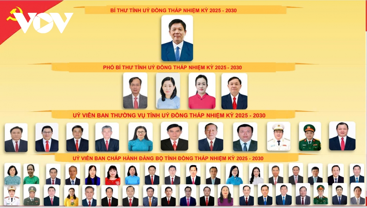 Ban chấp hành Đảng bộ tỉnh Đồng Tháp lần thứ I, nhiệm kỳ 2025 - 2030 gồm 53 người gồm: