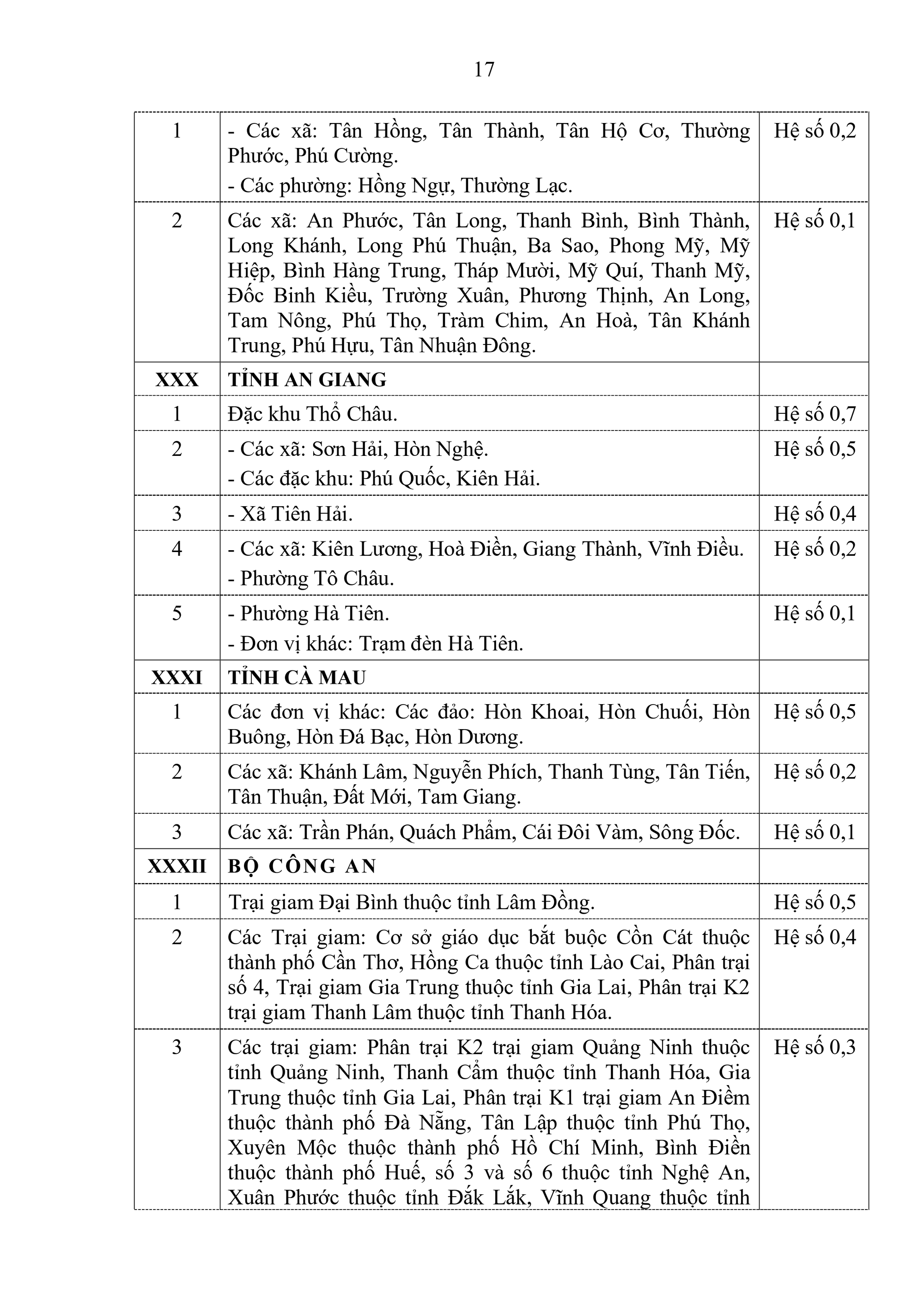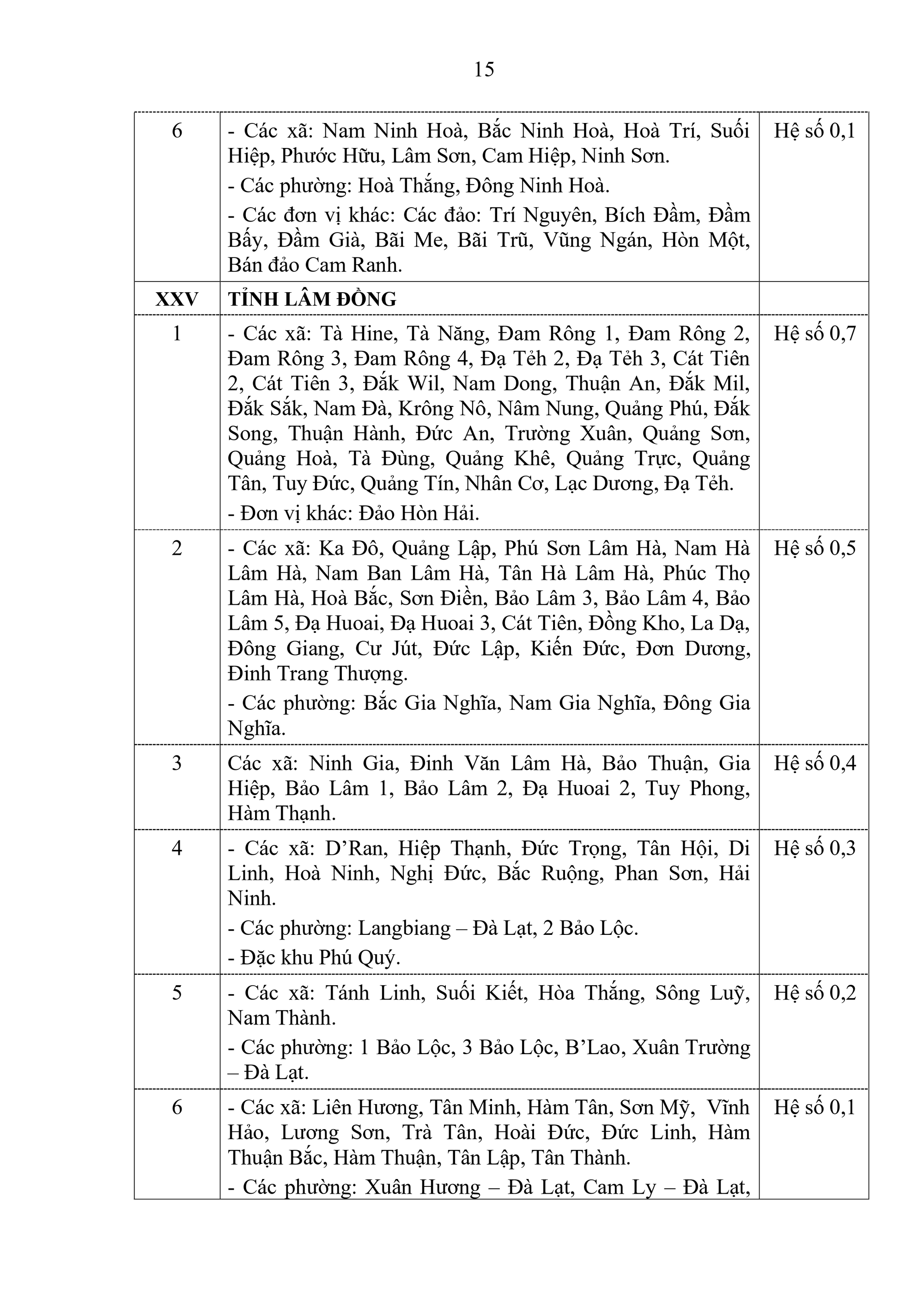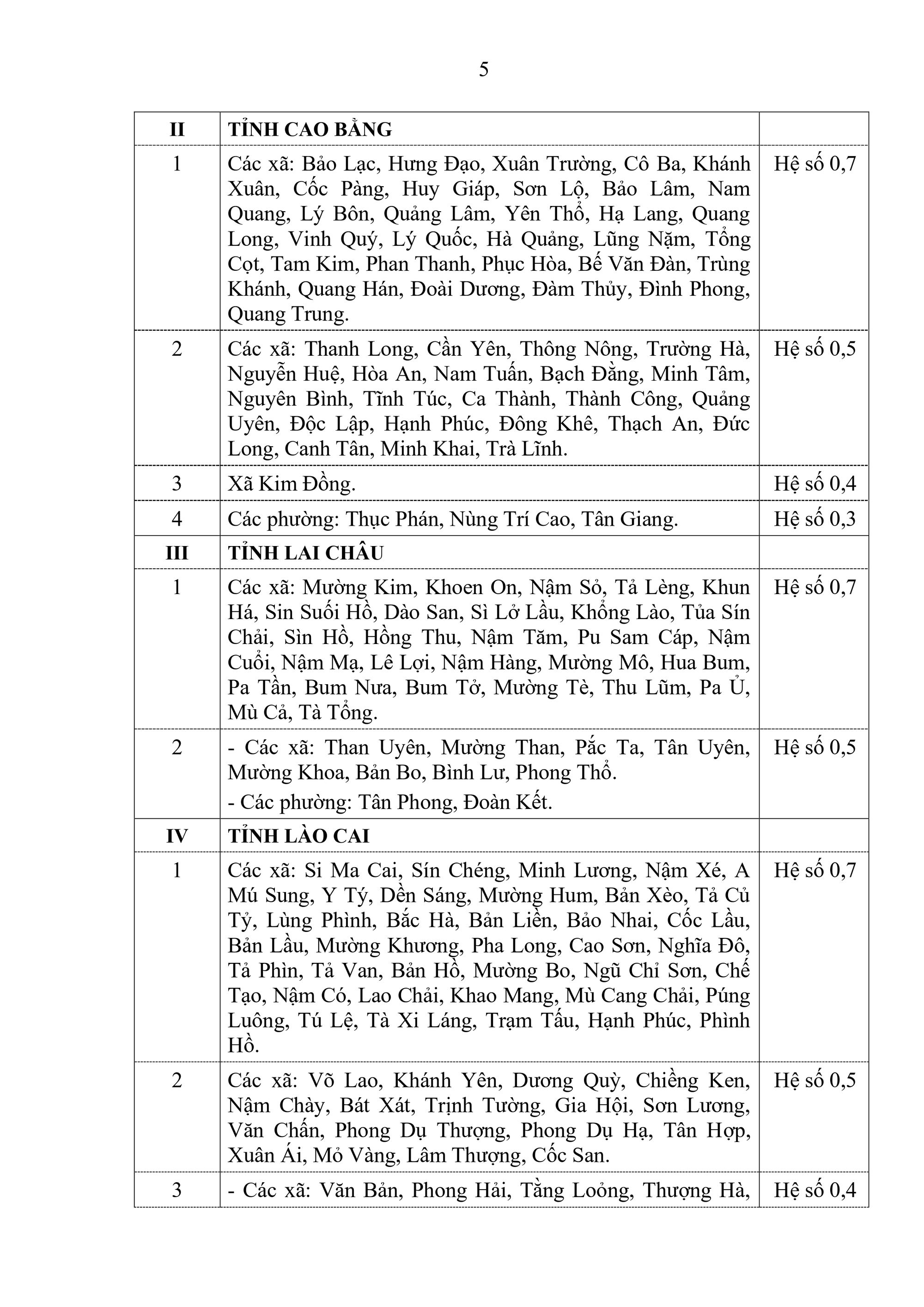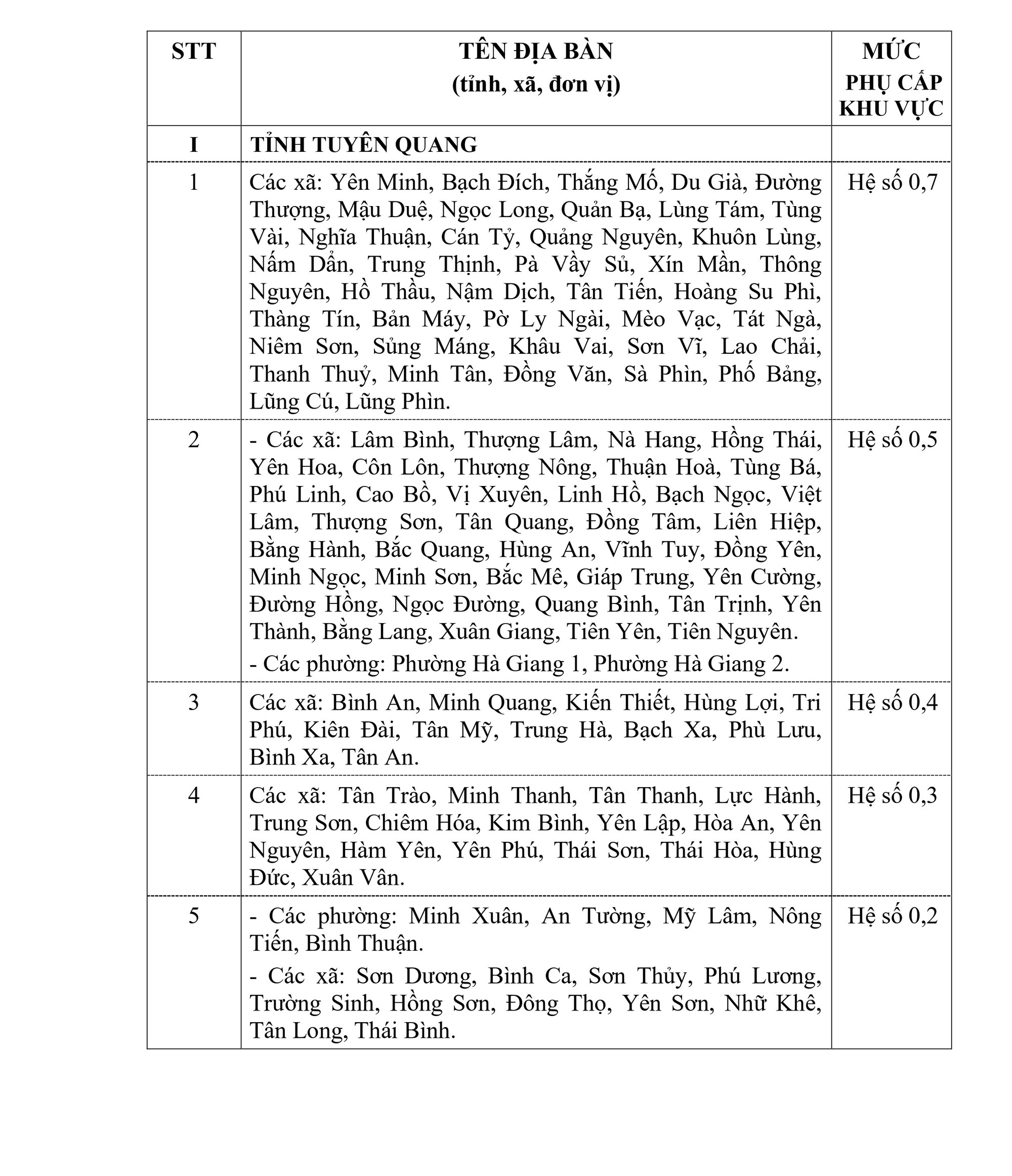 DANH SÁCH CÁC ĐỊA BÀN ÁP DỤNG PHỤ CẤP KHU VỰC