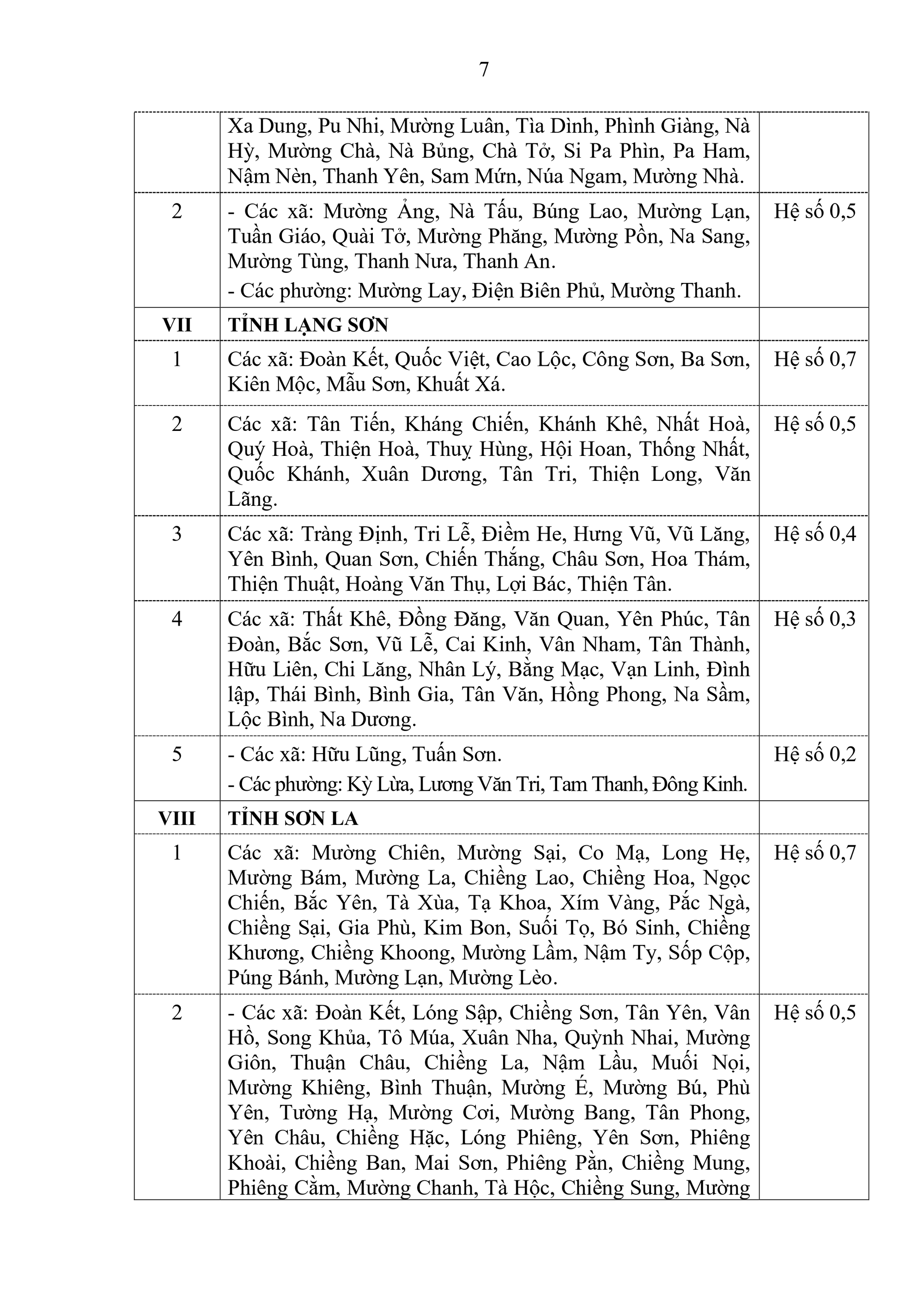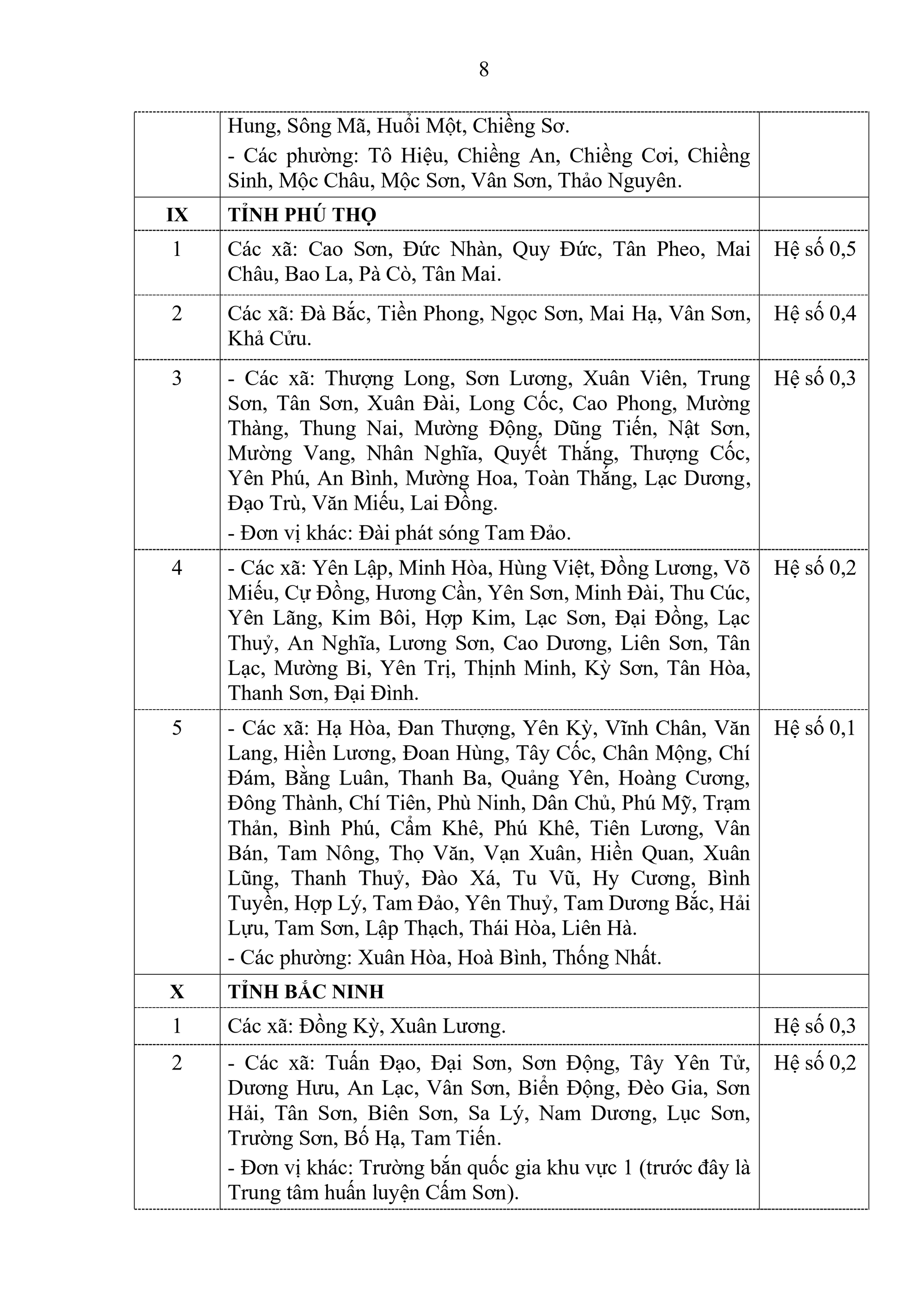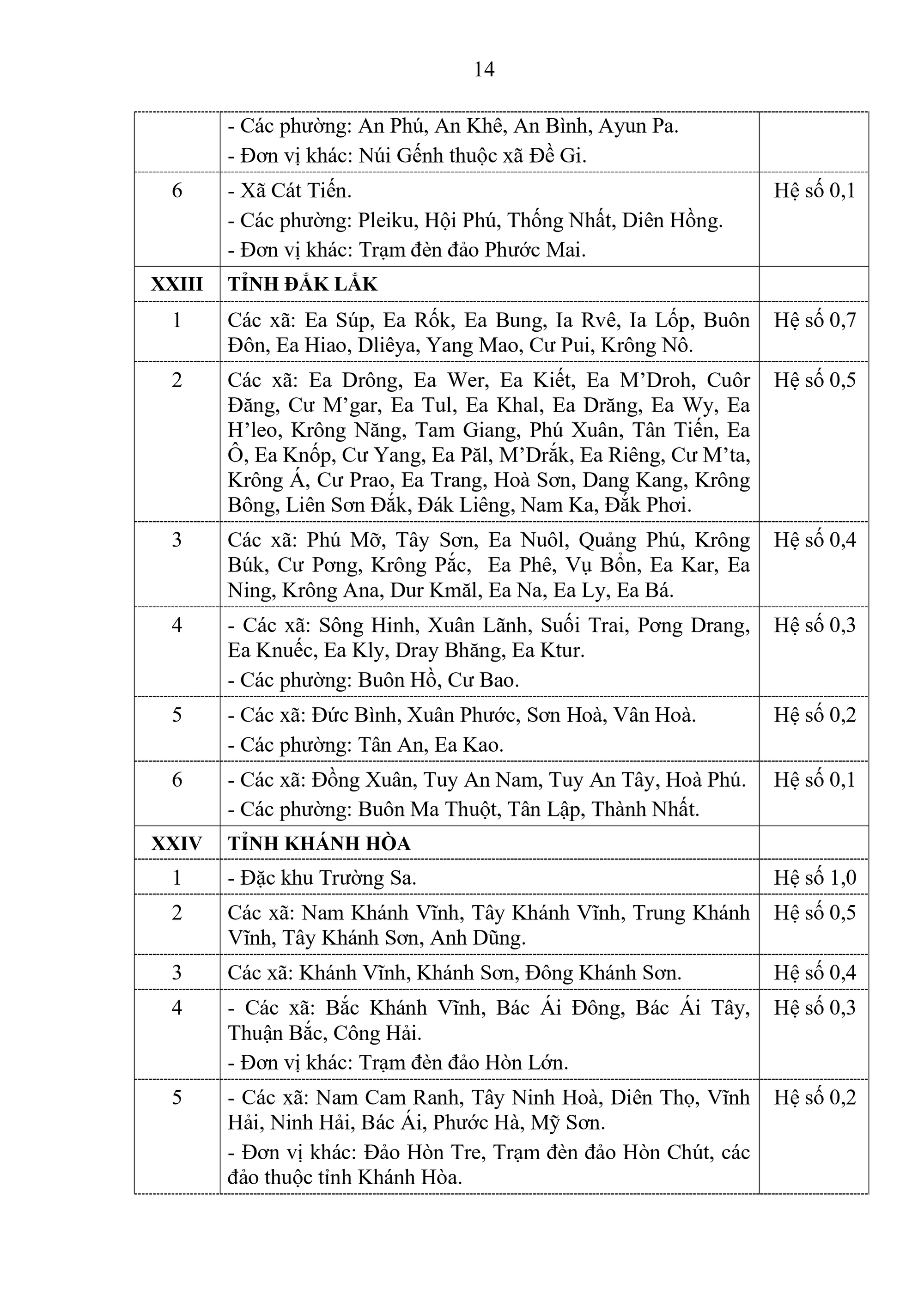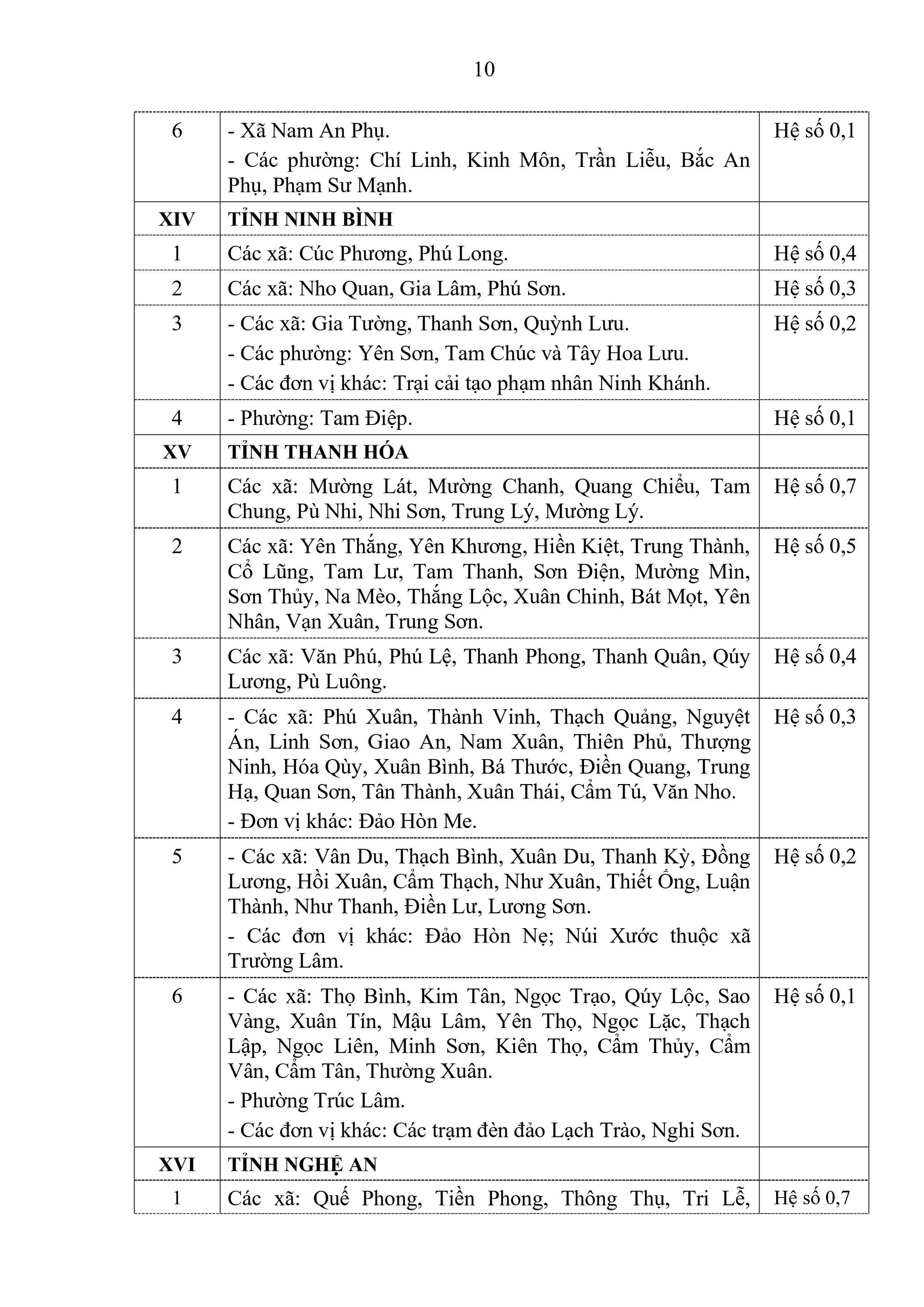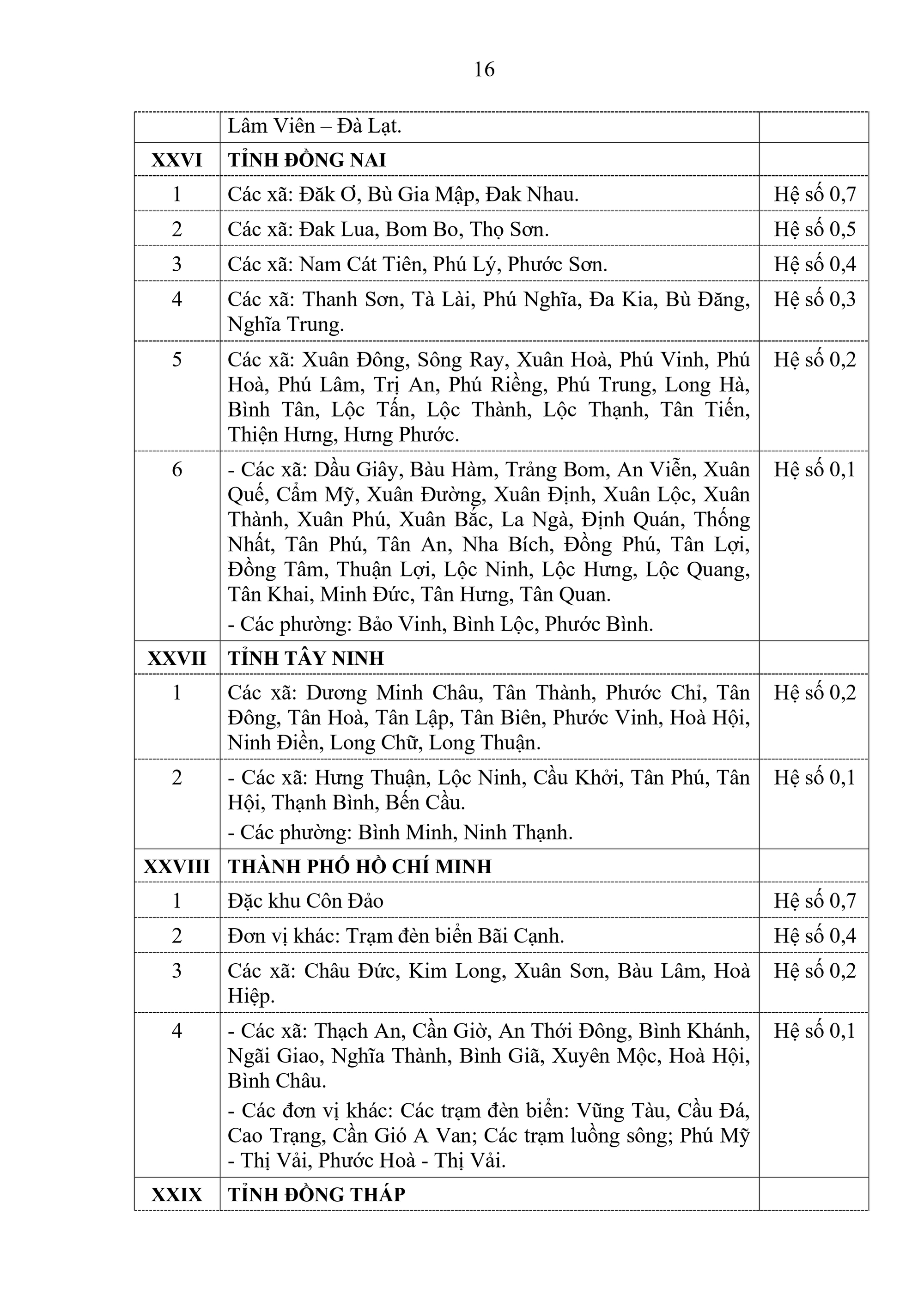 DANH SÁCH CÁC ĐỊA BÀN ÁP DỤNG PHỤ CẤP KHU VỰC