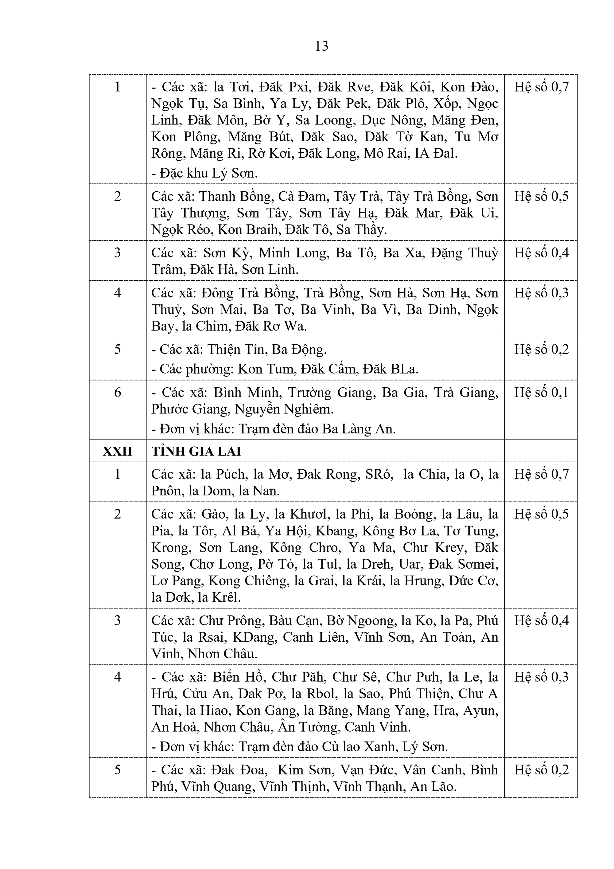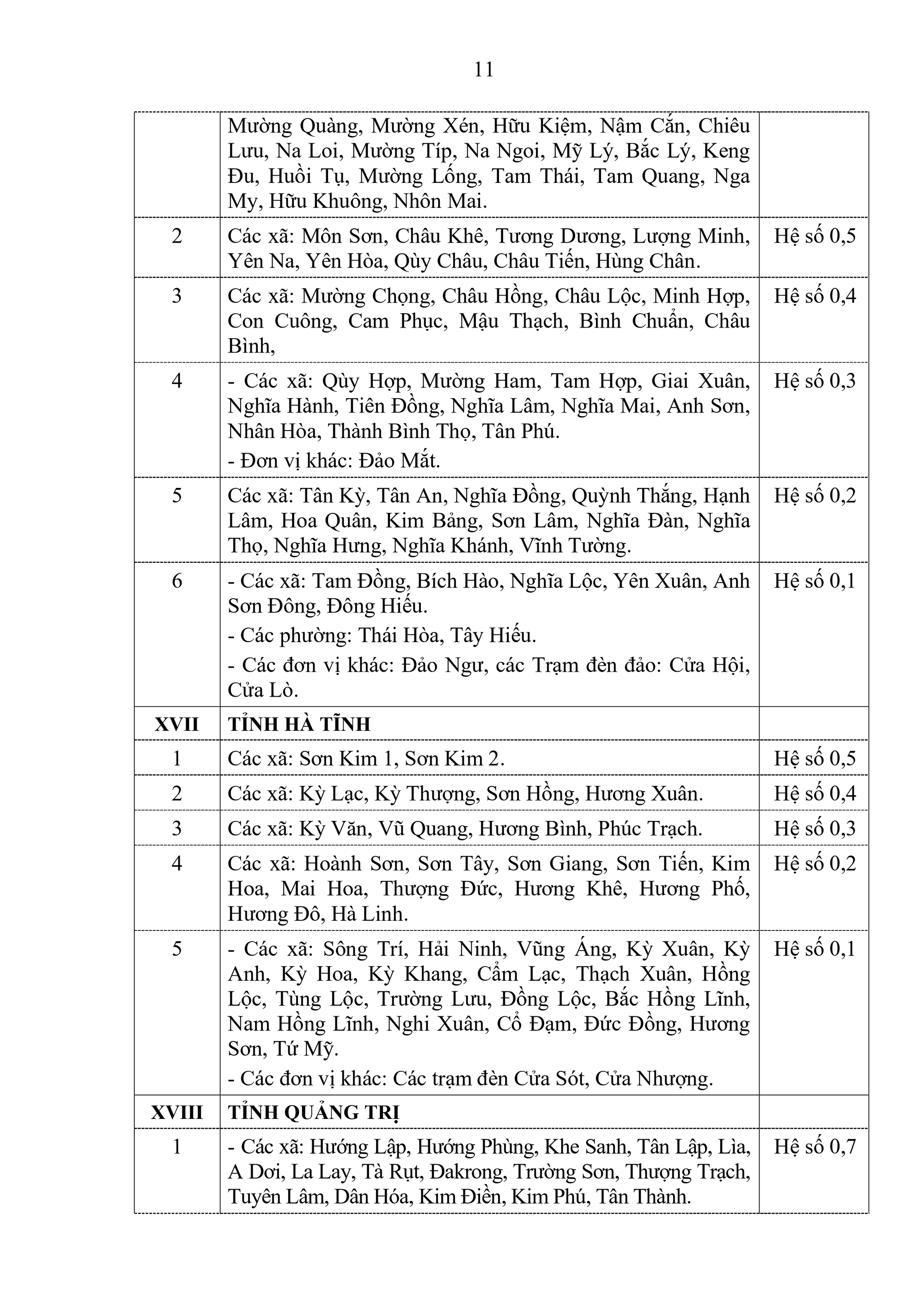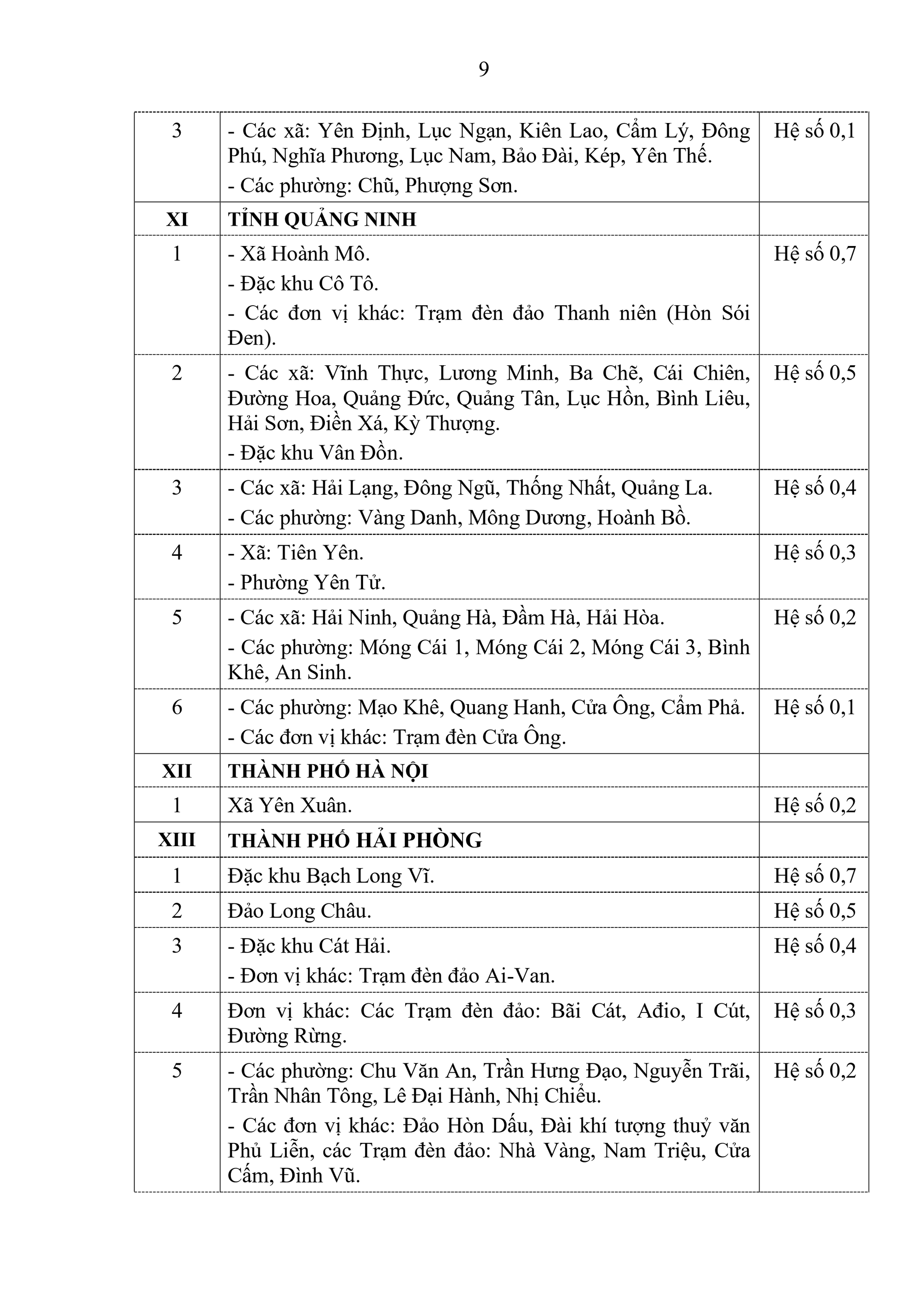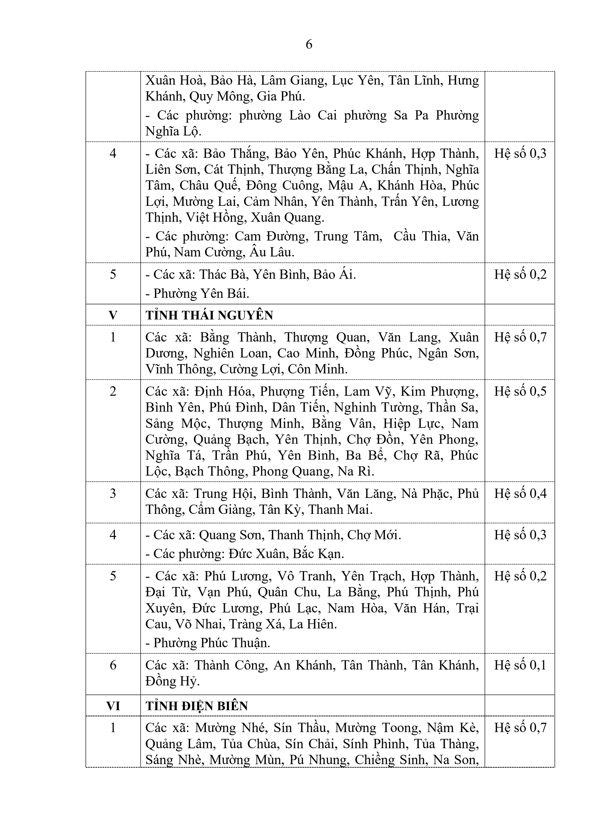 DANH SÁCH CÁC ĐỊA BÀN ÁP DỤNG PHỤ CẤP KHU VỰC